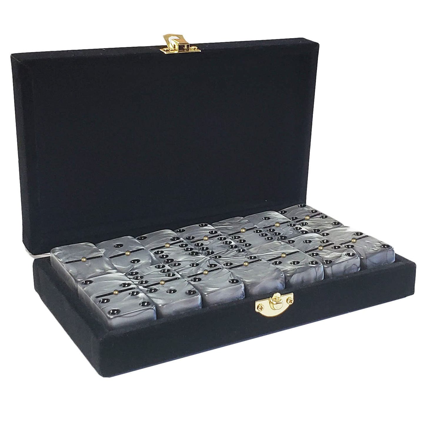 Domino Double 6 Silver Marbleized Tiles Jumbo Tournament Size