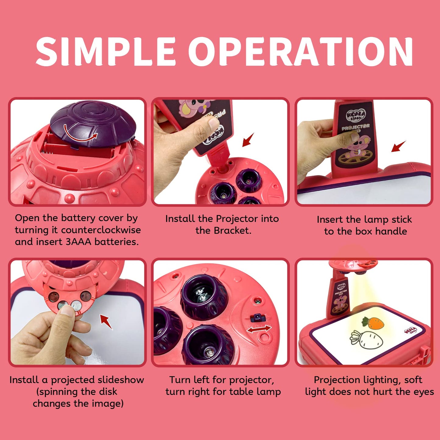 Drawing Projector Table For Kids, Handbag Design Painting Drawing Table Led Projector Childrens Toy Educational Early Learning Projection Drawing Table Sketch Doodle Board For Kids Boys Girls (Pink)