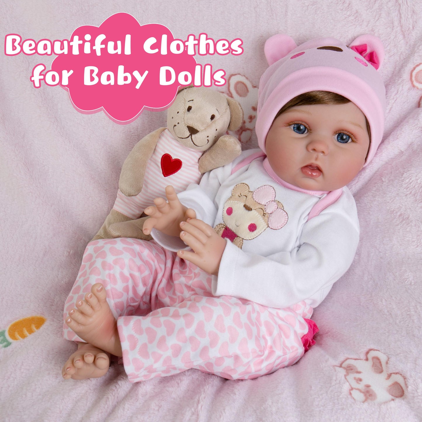 Ekokiz Reborn Baby Dolls Clothes Girl Cute Bear Pattern Baby Clothes For 17-22 Inches Realistic Newborn Baby Dolls Baby Girls' C