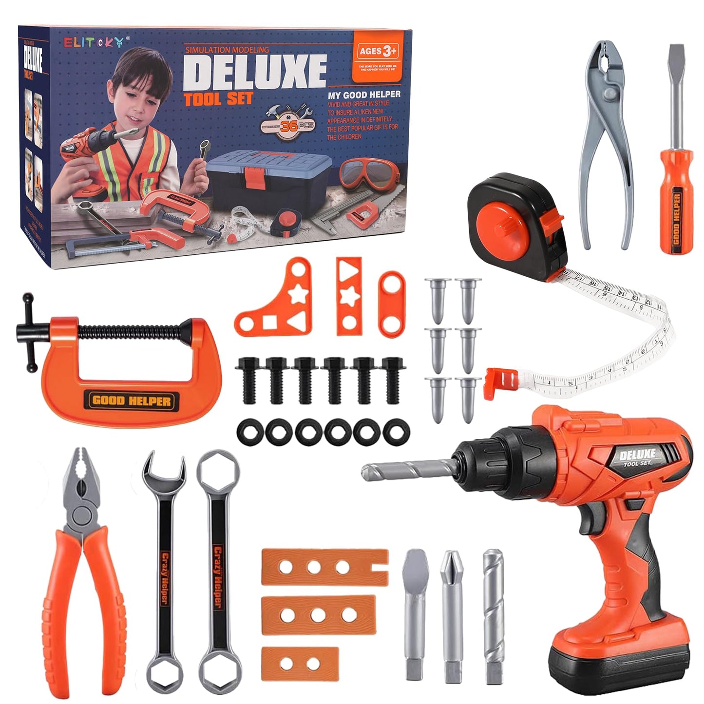 View compareElitoky Kids Tool Set - 35 PCS Toddler Tool Set with Tool Box & Electronic Toy Drill, Pretend Play Kids Construction Toy, Toddle