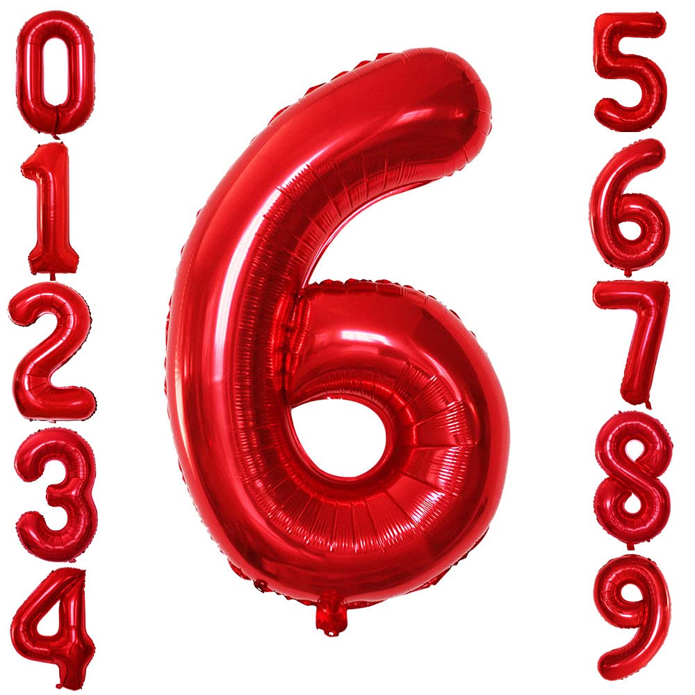 View compareGoer Red Foil Balloons Number 6,Huge Number Balloons For 6Th 66Th Birthday Party Supplies Anniversary Decorations (3 Pcs,42 Inch,32 Inch,16Inch)