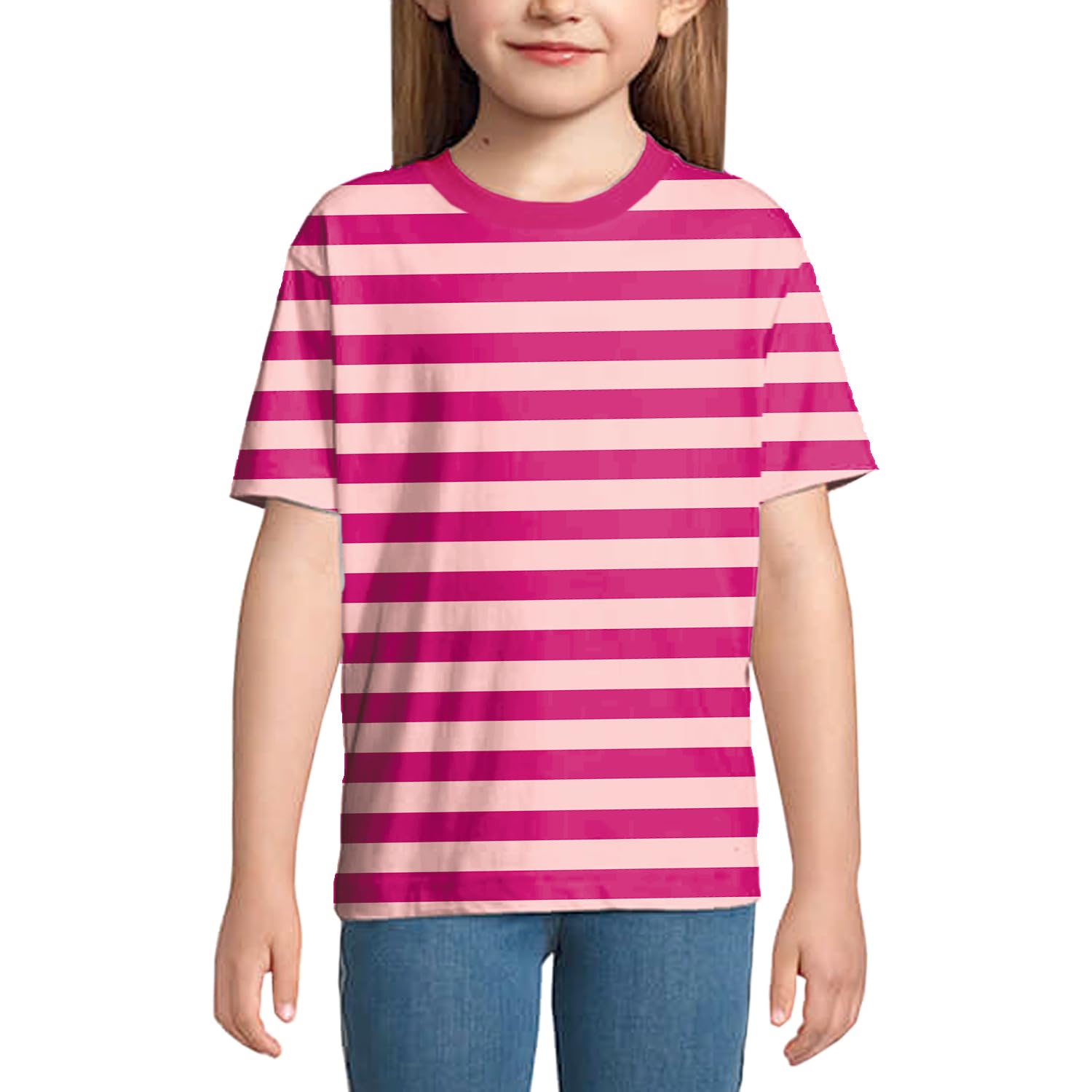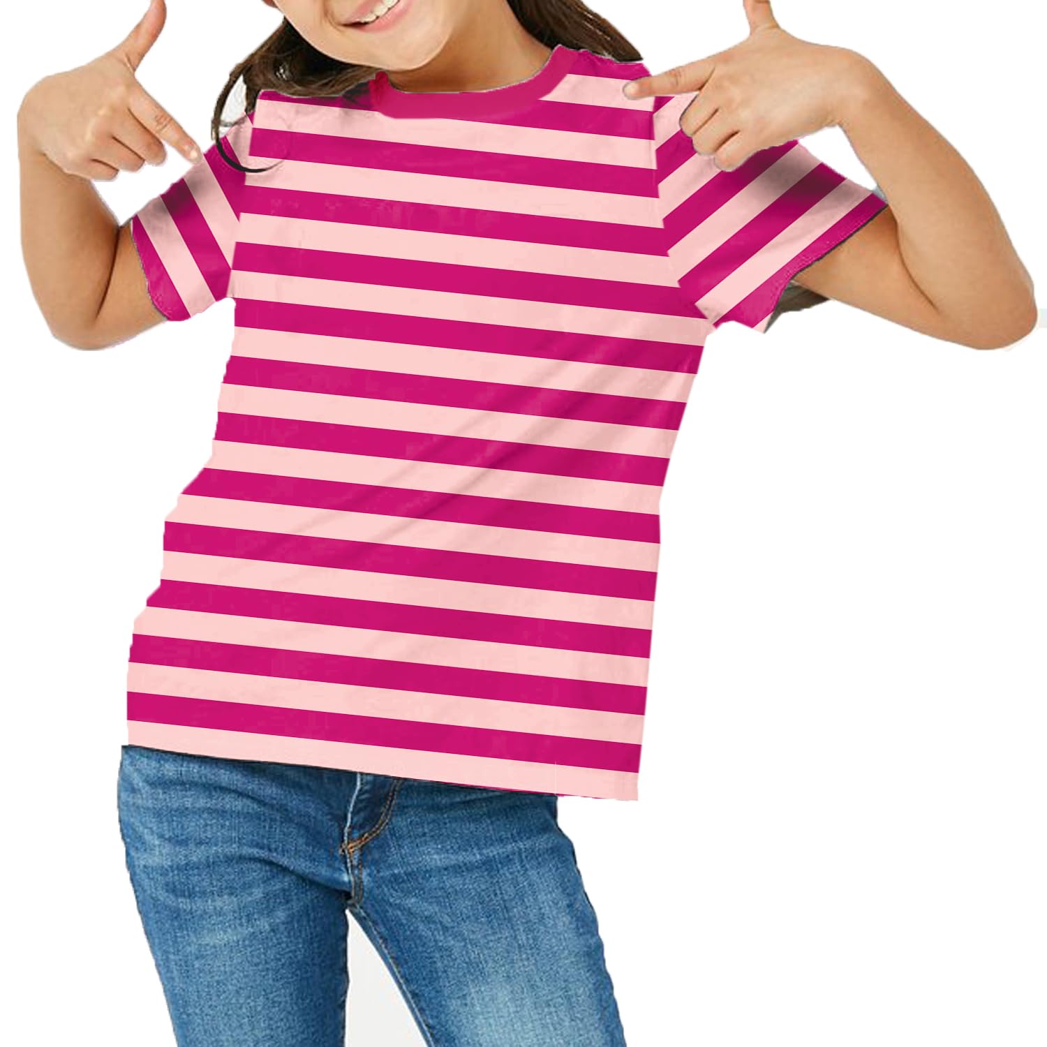 Halloween Kids Cheshire Cat Costume Pink Striped Shirt Girls Casual Summer Top 9-10 Years