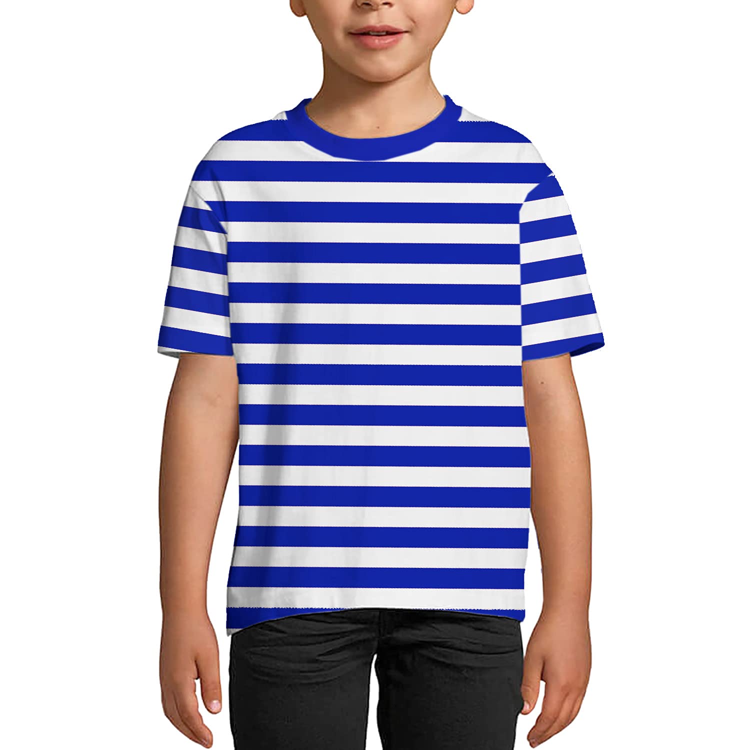 Halloween Kids Sailor Costume Shirt Short Sleeve Blue White Striped Girls Boys Summer Tee Top 7-8 Years