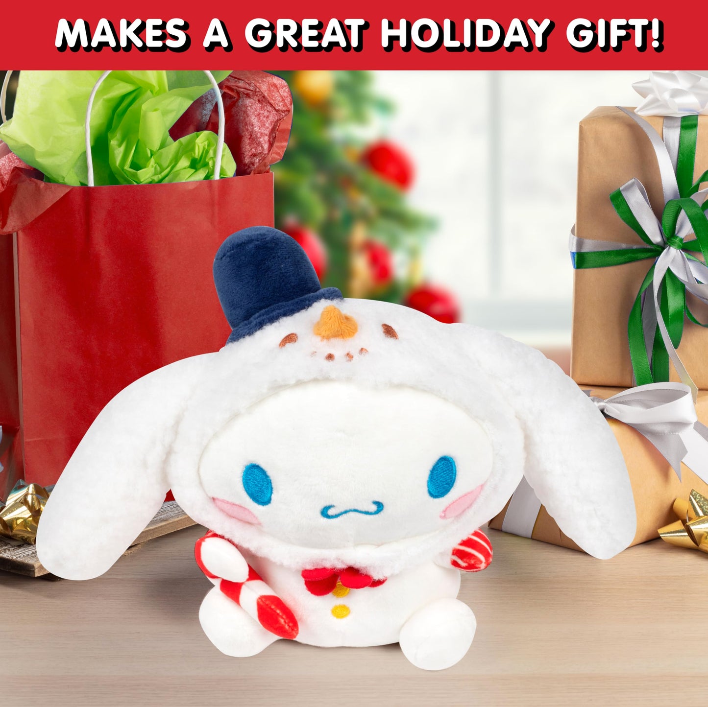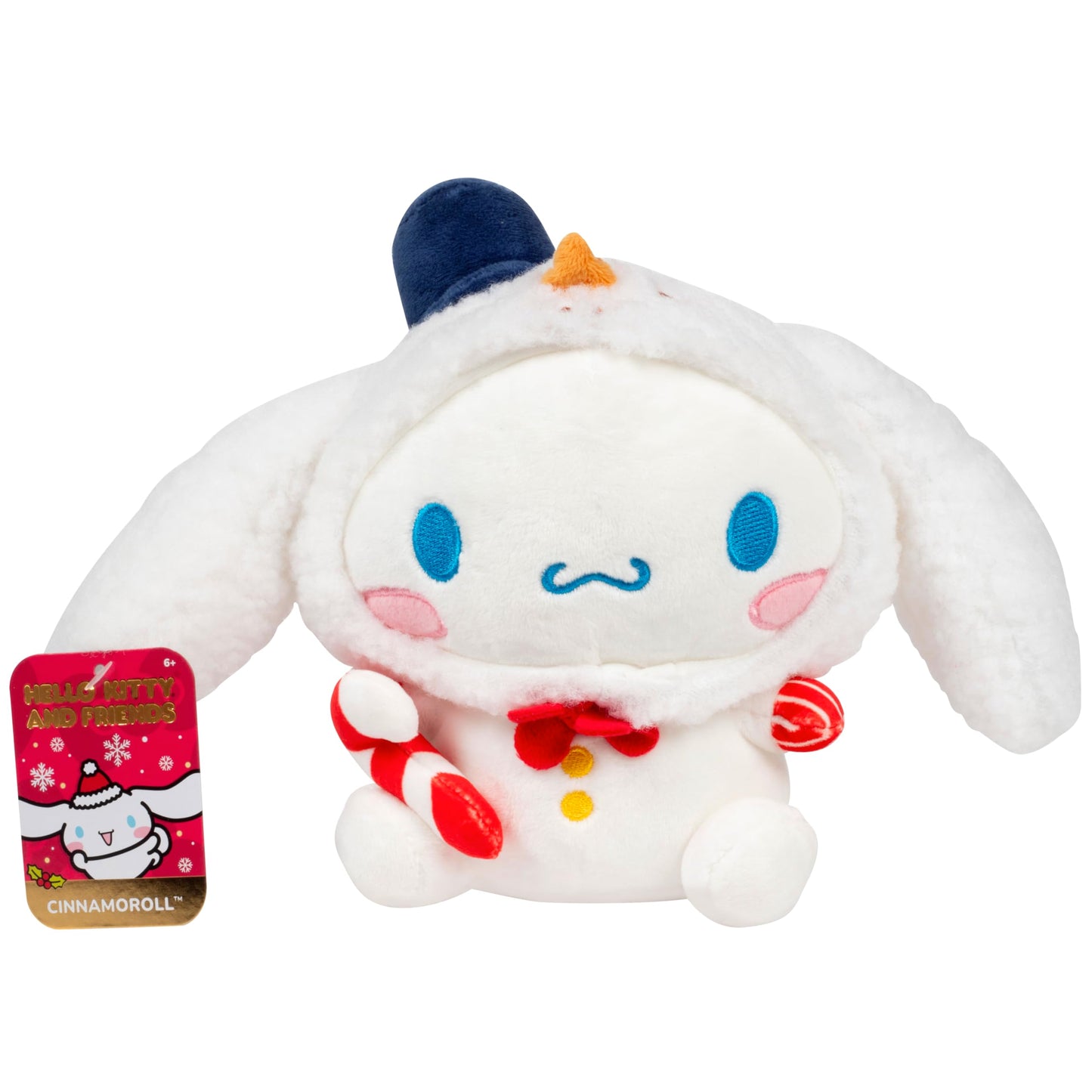 2025 Limited Edition! Cute and cuddly 8' Cinnamoroll christmas Plush stuffed animal is a must have for all Hello Kitty and Friends fans! The 8' Cinnamoroll dog plush doll is dressed in a Festive Holiday winter snowman onsie and is holding a candy cane! The Sanrio plush toy is inspired by the iconic character, Hello Kitty, from video games, animated series, music, and comics. These super soft, adorable, collectible plush toys make great cuddle companions! Just in time for Christmas! Perfect for kids, girls and boys of all ages! Makes a great toy gift for kids who love stuffed animals - especially Hello Kitty & Friends! These authentic quality plushie figures are great gifts for Christmas, birthdays, Easter, holidays, Valentine's Day, stocking stuffer, basket stuffer and more! Officially licensed merchandise. Polyester. Measures approximately 8 inches.