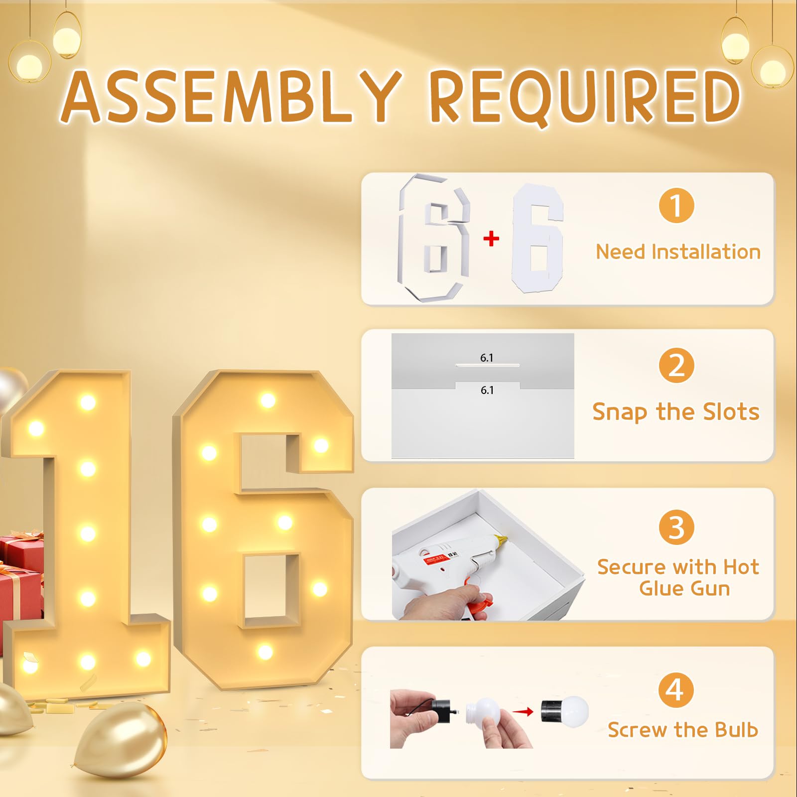 - Q: How do I assemble the light-up numbers for my birthday party? A: To assemble the light-up numbers, match the slots on the pre-cut foam board frame with the slots on the number frames. Secure them using a hot glue gun, then attach the light bulbs by screwing them onto the frames as per the provided assembly instructions.