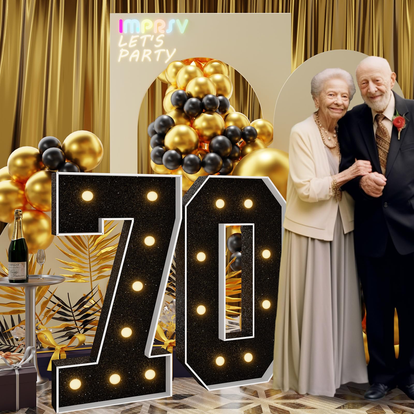 Imprsv 3Ft Black 70Th-Birthday Decorations Numbers: 70Th Birthday Party Anniversary Decorations Large Light Up Numbers 70 For Me