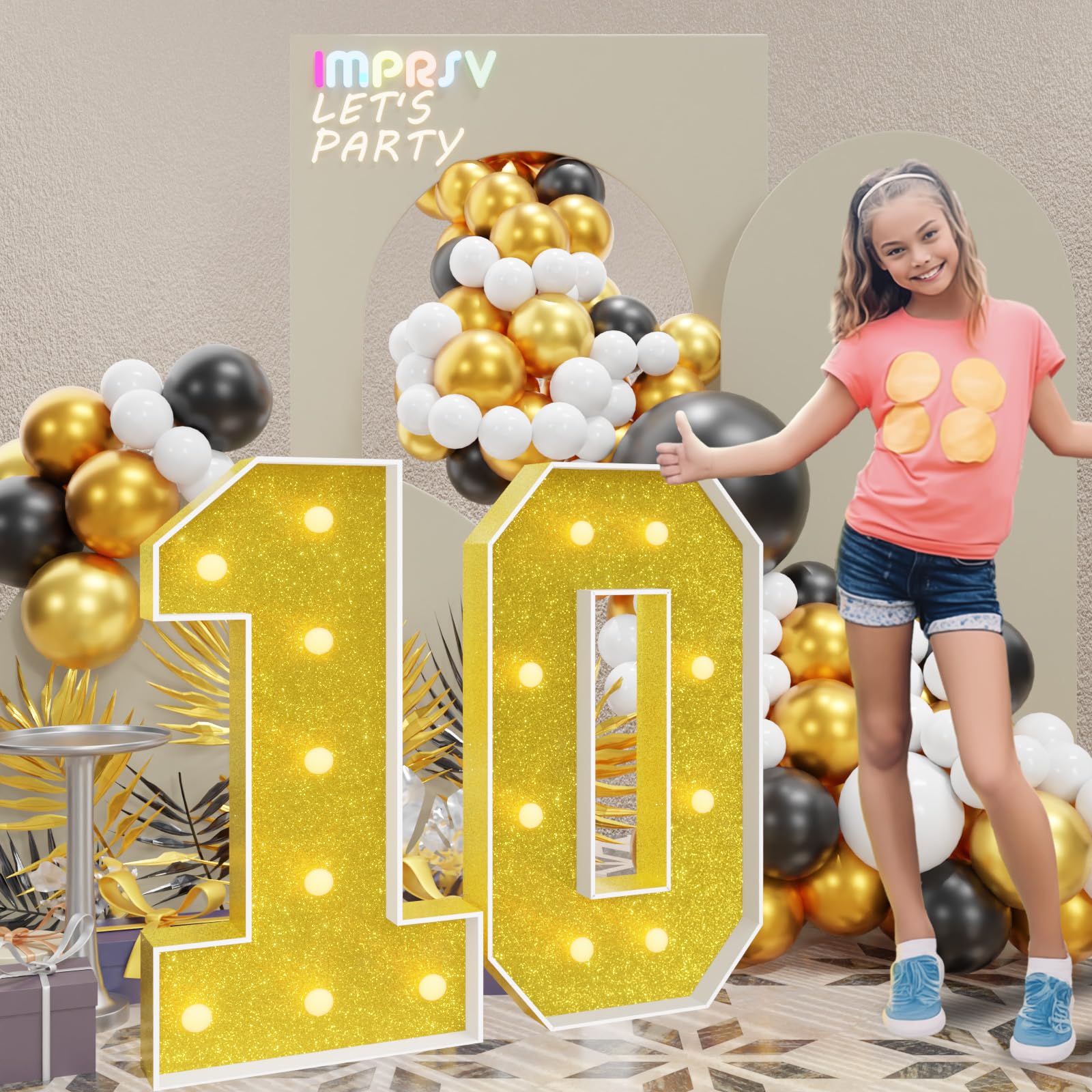 Imprsv 3Ft Gold 10Th-Birthday Decorations Numbers: 10Th Birthday Party Anniversary Decorations Large Light Up Numbers 10 For Gir