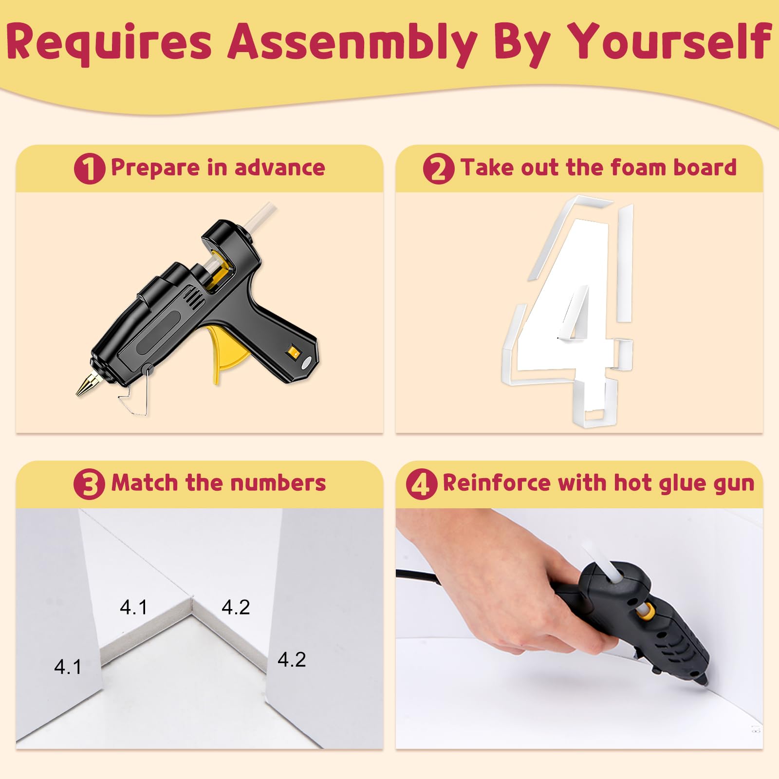 - Q: How do I assemble the marquee numbers? A: The marquee numbers come pre-cut with corresponding number marks and an instruction manual, making assembly easy by following the provided steps.