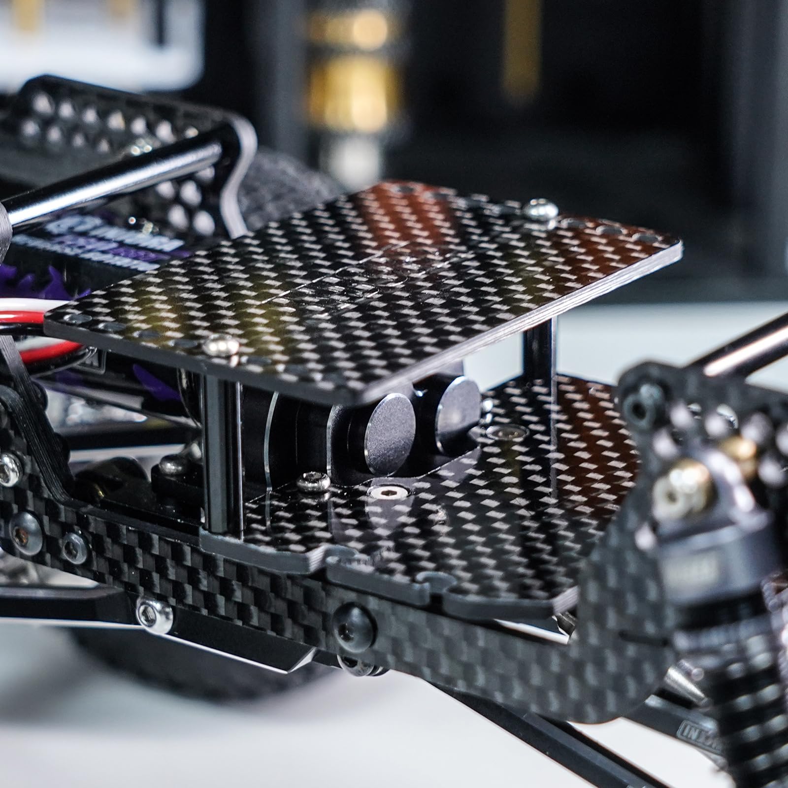 - Q: What materials are used in the INJORA Battery ESC Receiver Tray? A: The INJORA Battery ESC Receiver Tray is constructed from high-quality carbon fiber and aluminum, providing both durability and lightweight performance.