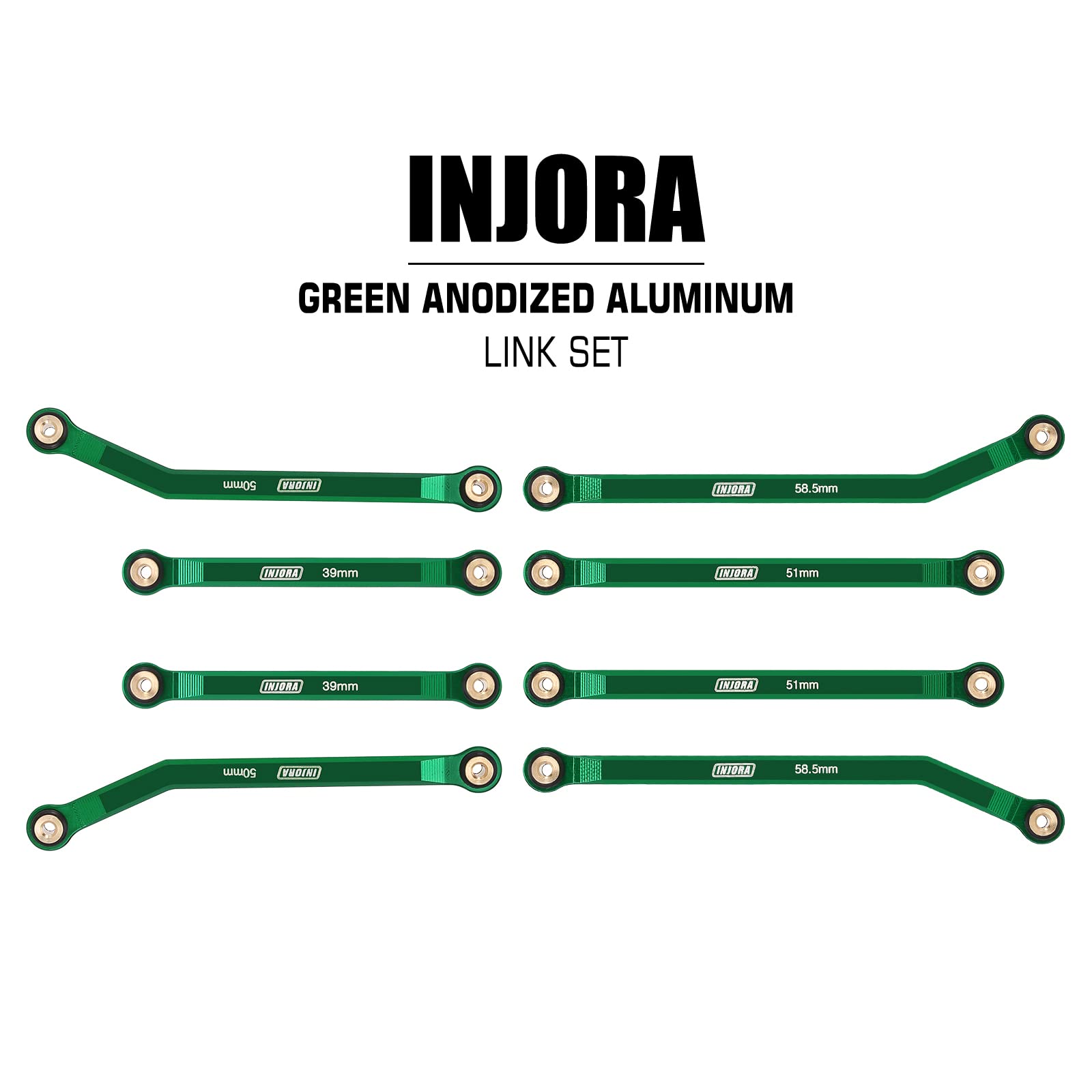 - Q: What is included in the package of the INJORA High Clearance Front 4 Links Set? A: The package includes one complete set of SCX24 High Clearance 4 Links, which contains all necessary components for installation on compatible RC crawler models.