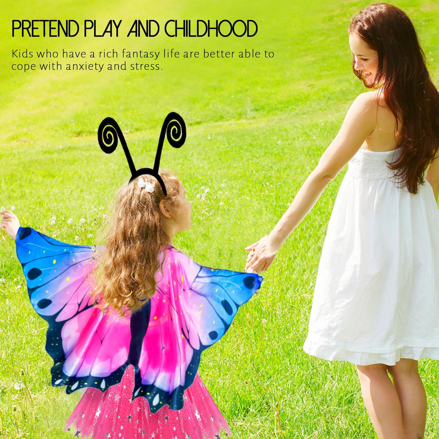 1 Set= 1* Girls Butterfly Wings + 1* Butterfly Mask + 1* Rainbow Tutu Skirt +1* Black Antenna Headband..Great For Costumes Or Everyday Play!