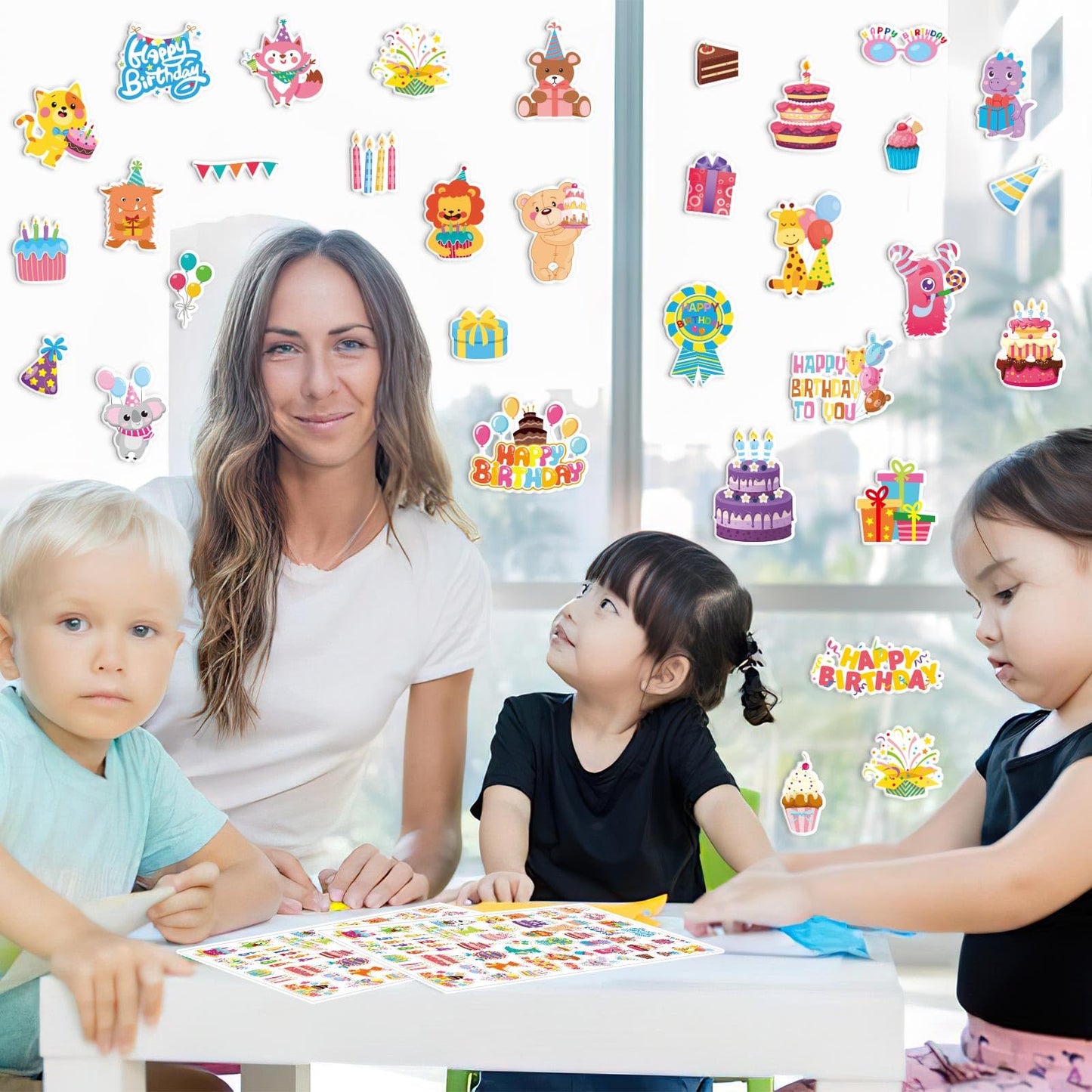 - Q: How many stickers are included in the package? A: The package includes 300 birthday foam stickers, featuring 50 unique birthday-themed designs, providing plenty of options for decoration and creativity.