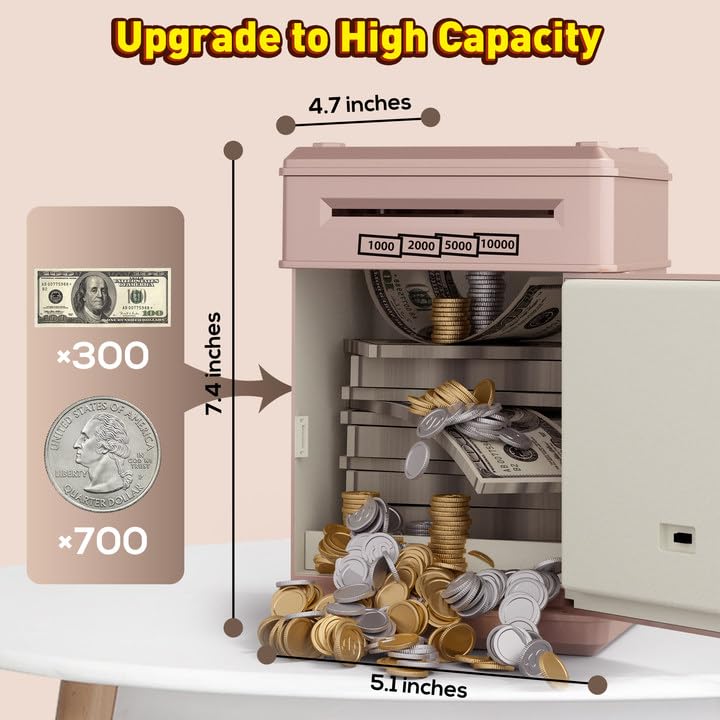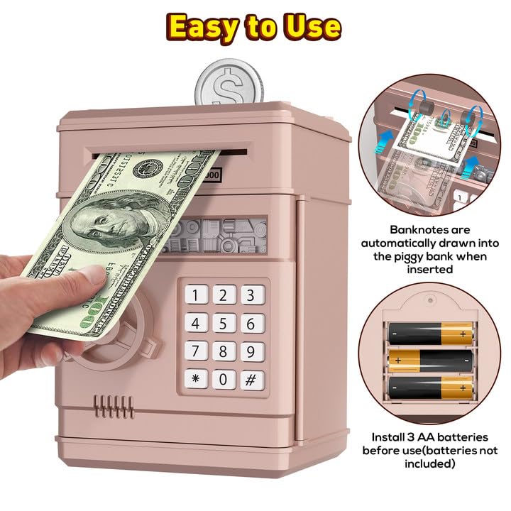 Juneu Piggy Bank For Kids,Electronic Money Bank Toys For Ages 5 6 7 8 9 10 11 12 13,Birthday Gifts For Girls And Boys(Rosegold)