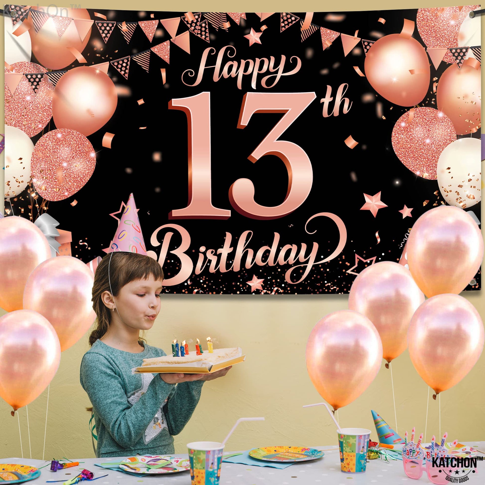 View compareKatchon, Rose Gold Happy 13Th Birthday Banner - Huge, 72X44 Inch | Rose Gold And Black 13Th Birthday Backdrop, 13Th Birthday Party Decorations | 13 Birthday Banner, 13Th Birthday Decorations For Girls