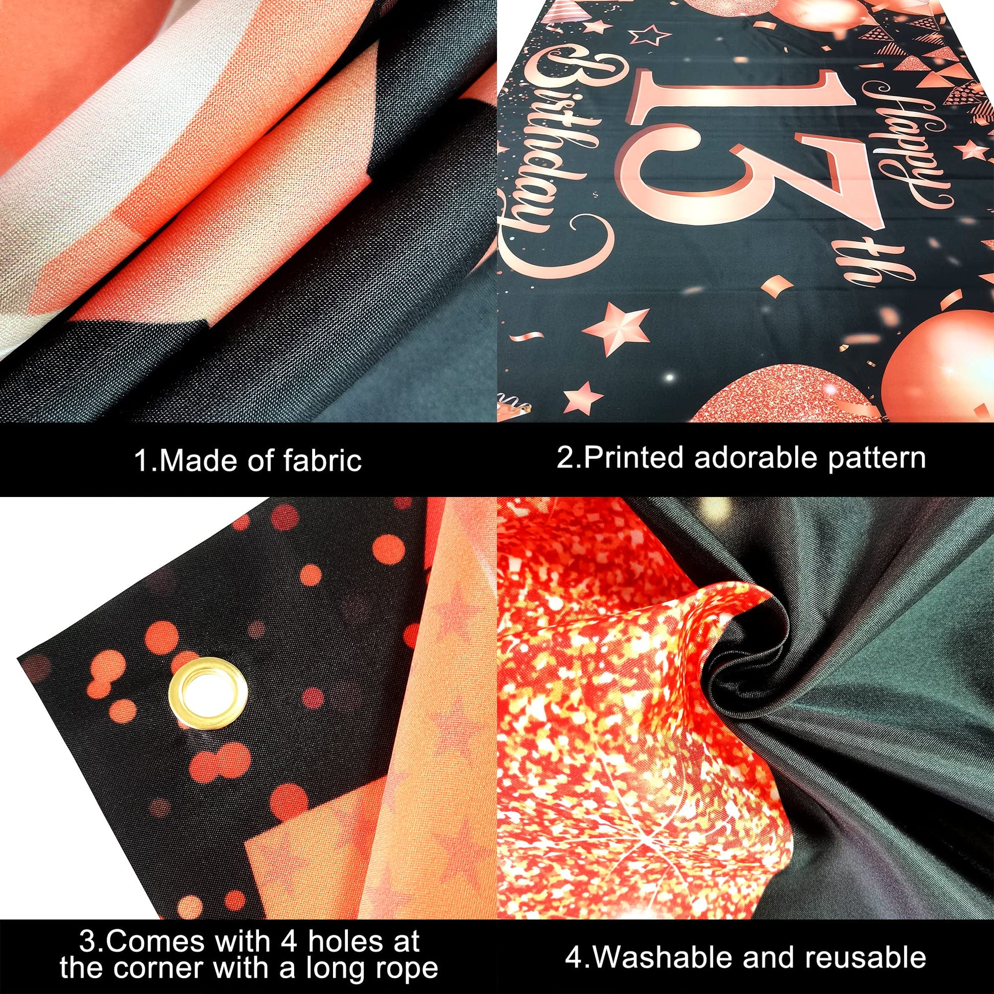 1) Material: Cloth Fabric Material2) Rose Gold 13th Happy Birthday Banner : 72x44 Inch