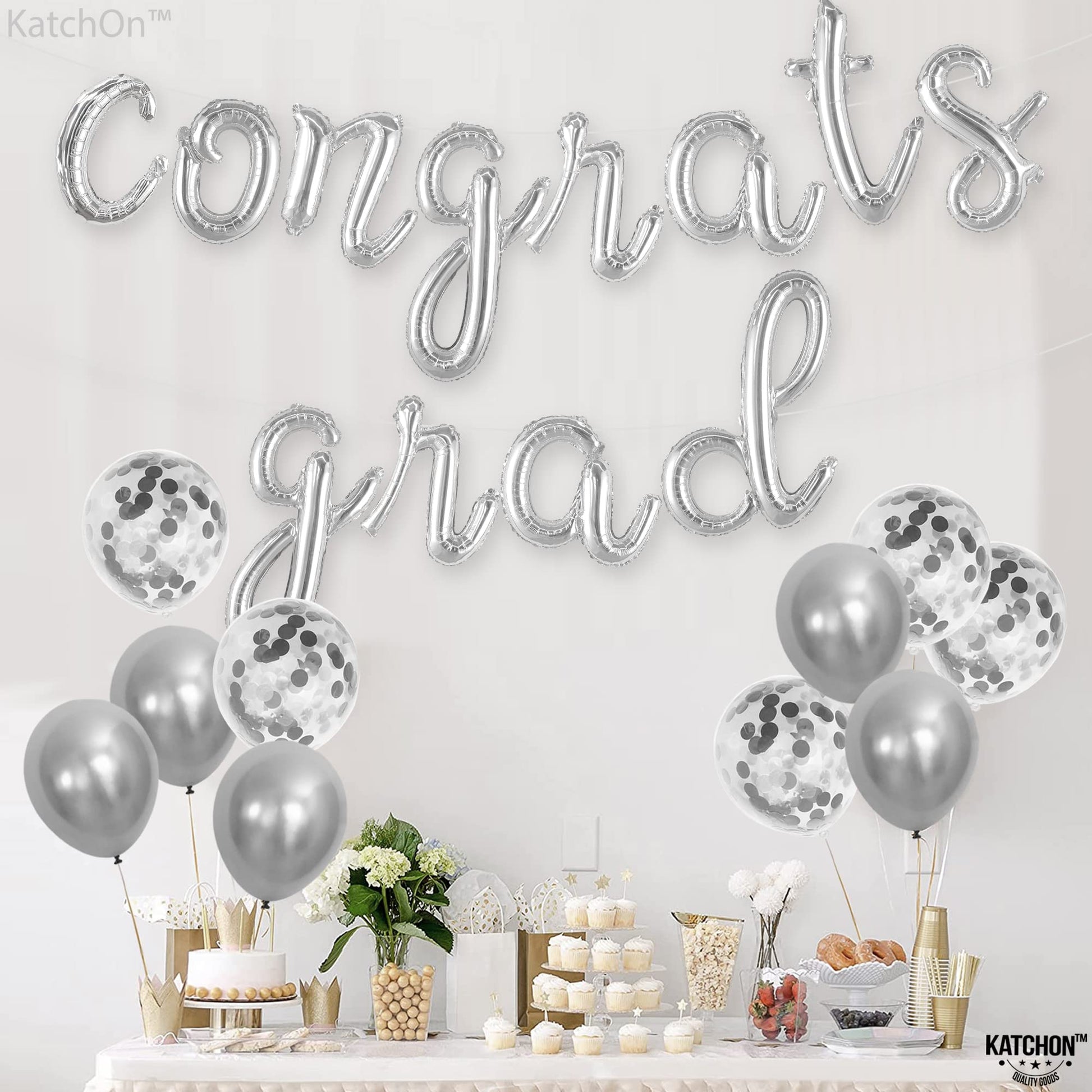 View compareKatchon, Silver Congrats Grad Balloons - Script, 16 Inch | Congratulations Balloons For Graduation Decorations Class Of 2025
