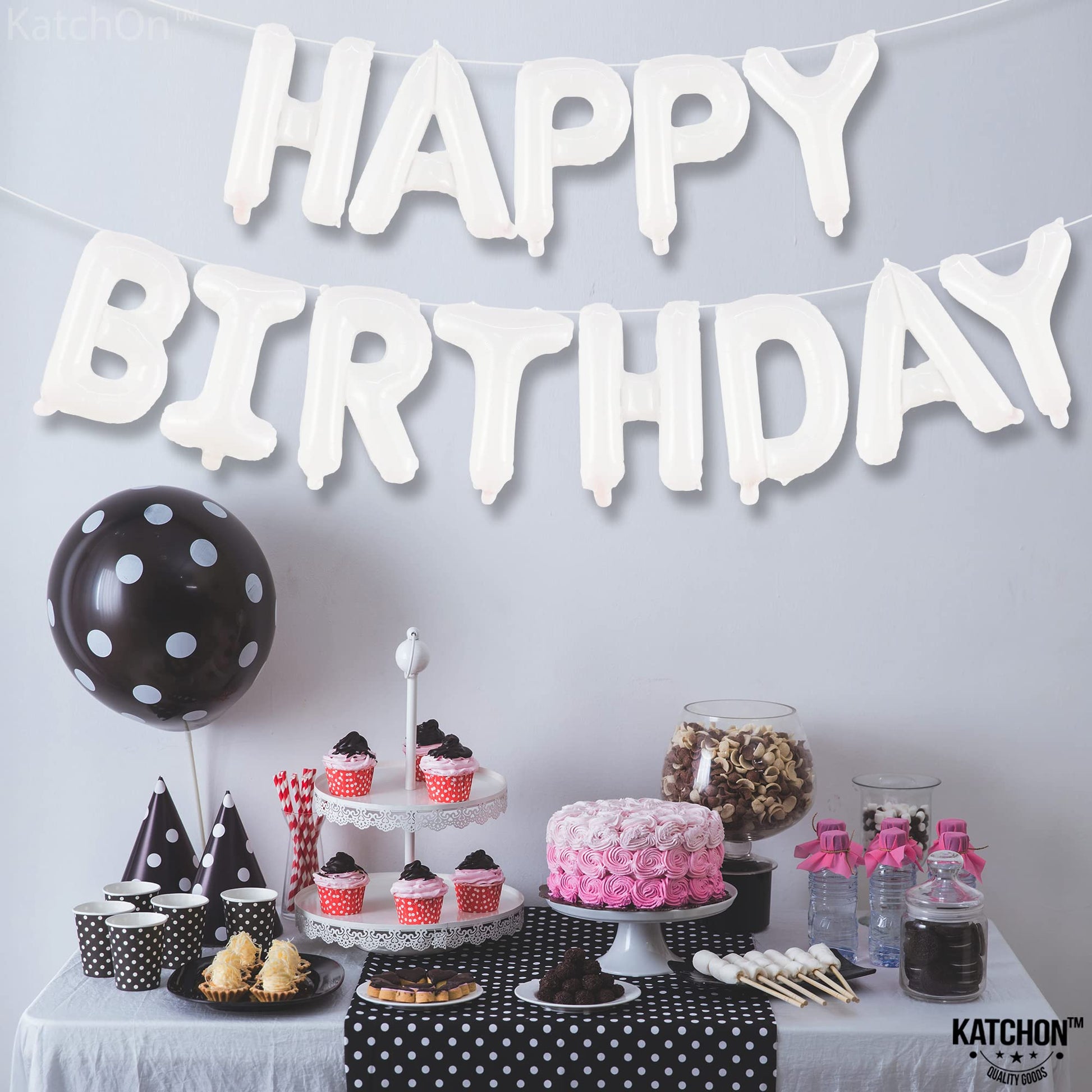 -KatchOn White happy birthday balloons letters pink for white happy birthday sign or black and white birthday party decorations