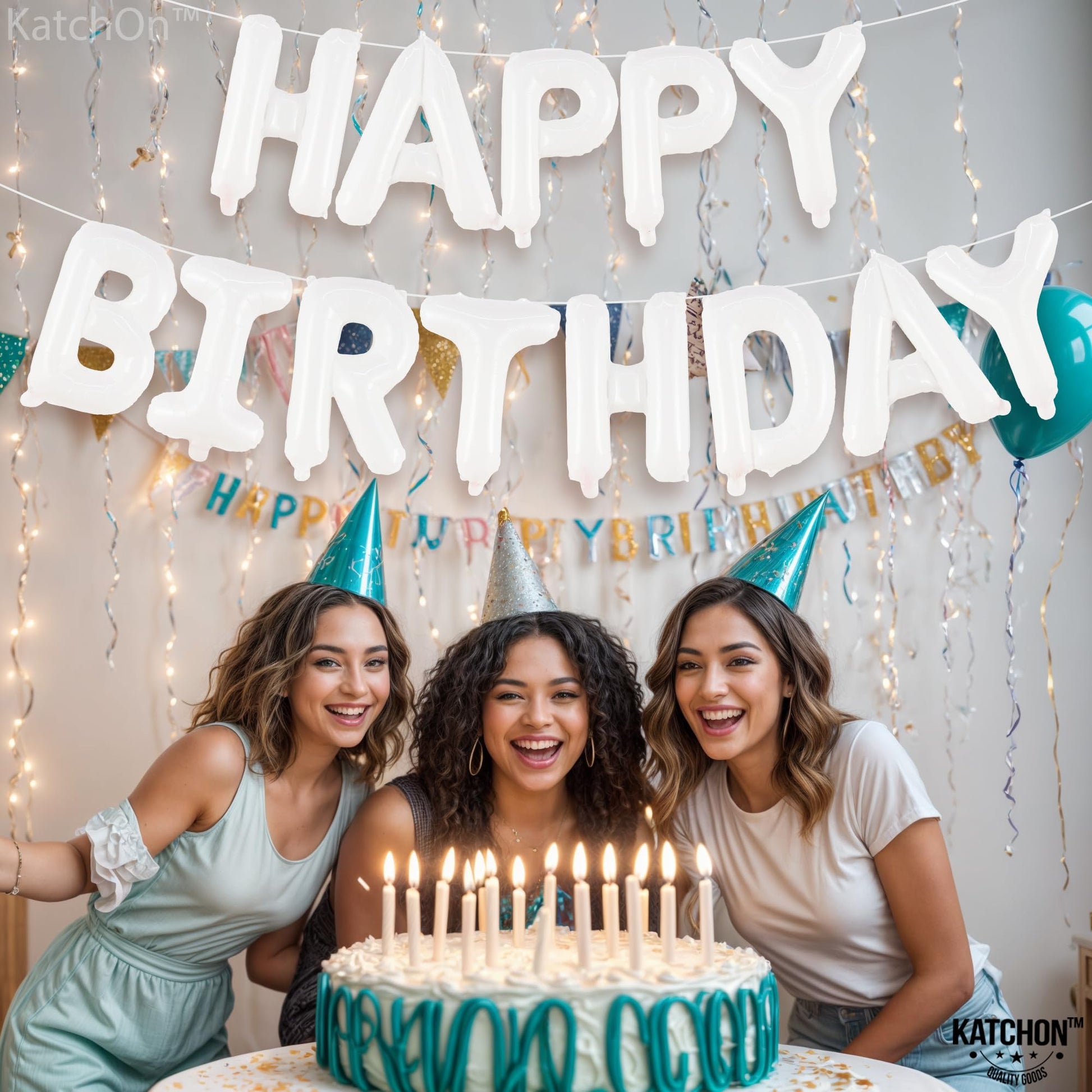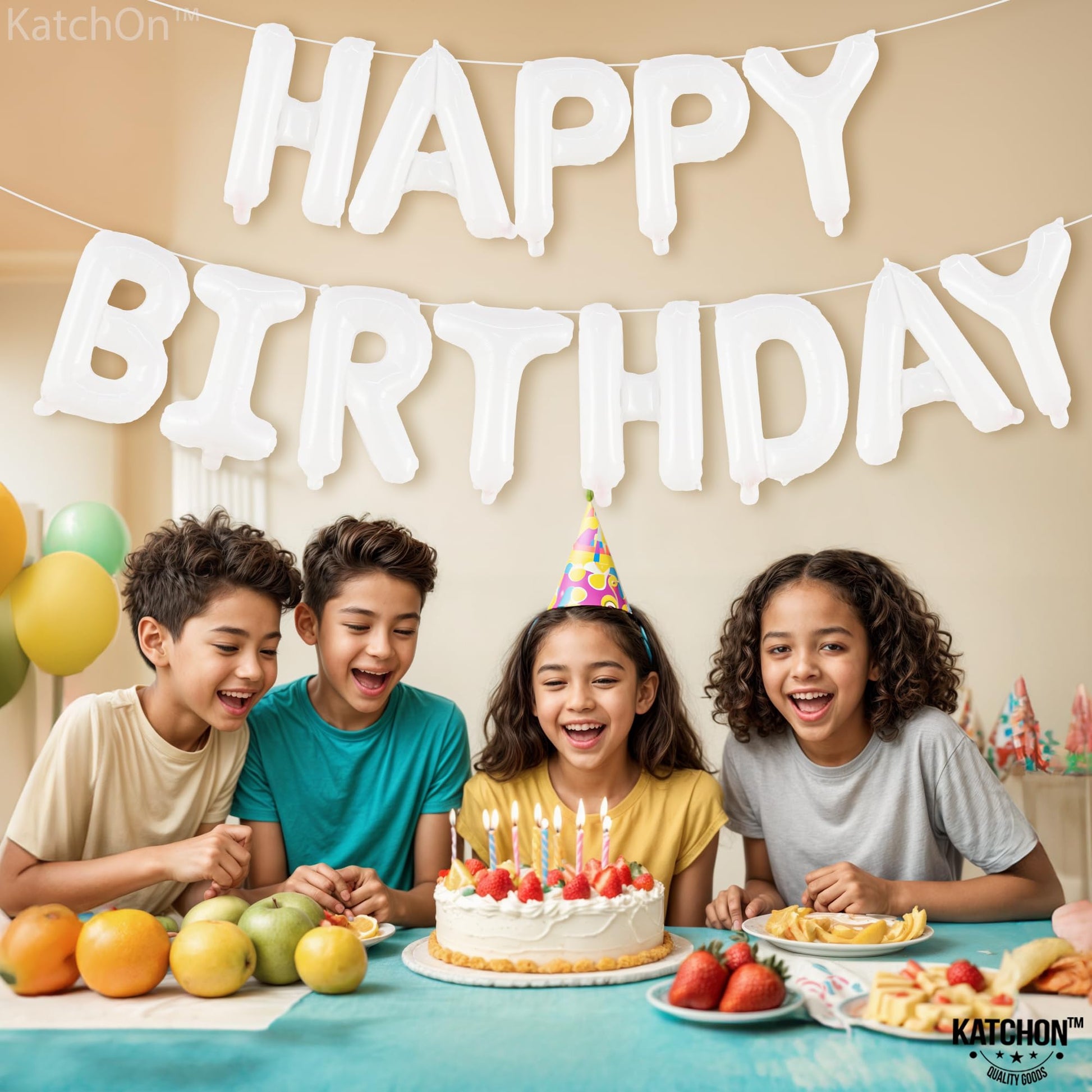 Katchon, White Happy Birthday Balloons Letters - 16 Inch | Happy Birthday Balloon White | White Happy Birthday Banner, White Birthday Decorations | Happy Birthday White Balloons For White Party Dècor