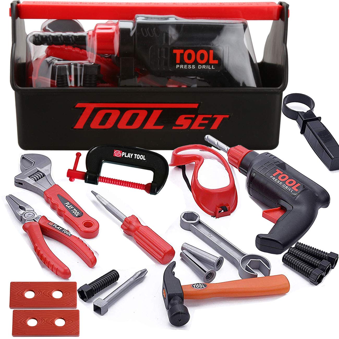 - Q: What tools are included in the kids' tool set? A: The tool set includes 22 pieces such as a power drill (electronic cordless drill), safety goggles, a play hammer, nails, nuts, bolts, a ratchet, channel lock pliers, and a screwdriver, all designed for safe and fun pretend play.