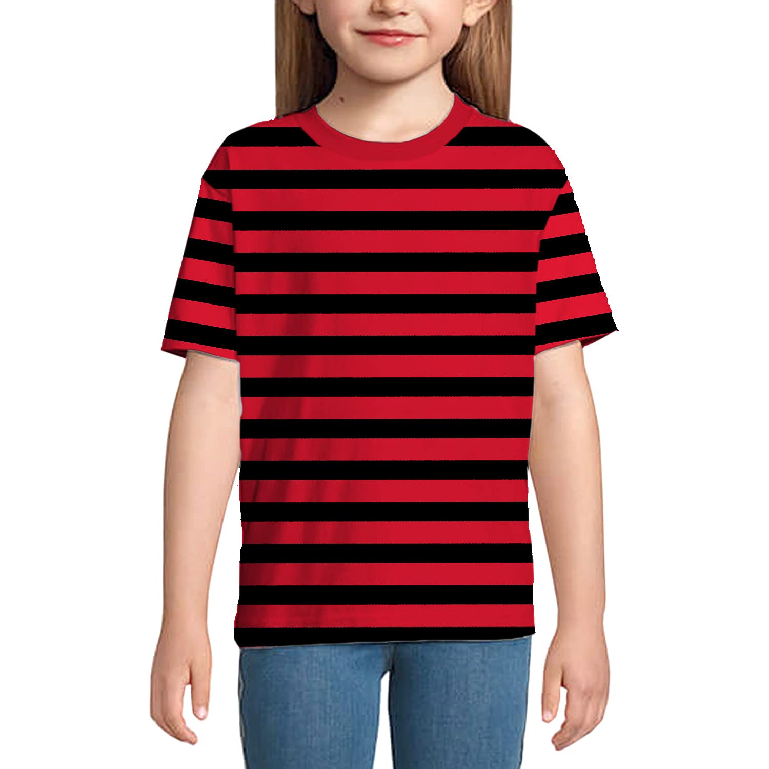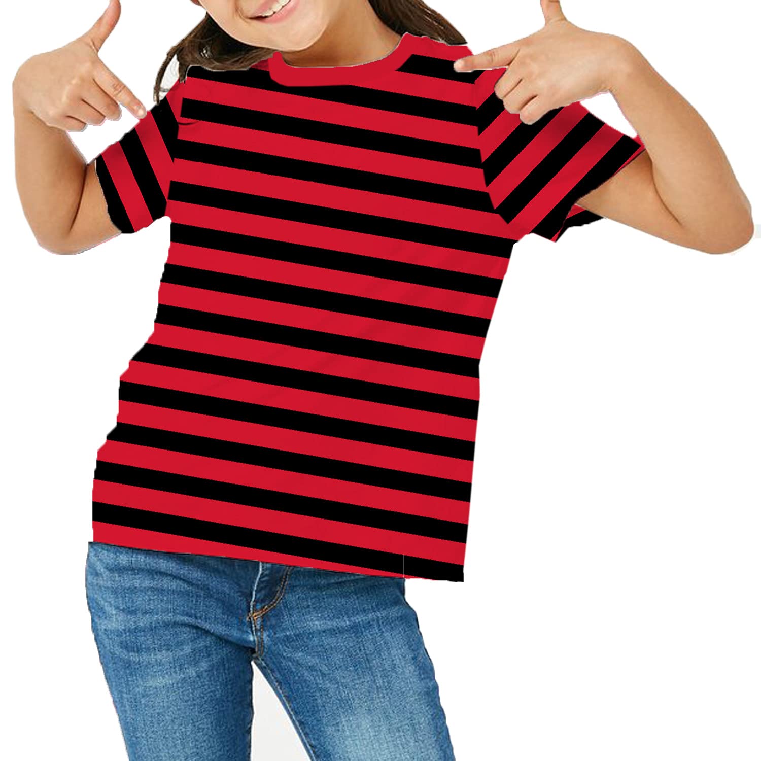 Kids Black Red Striped Shirt Linus Boys Freddy Halloween Costume Summer Short Sleeve Basic Tee Top 13-14 Years