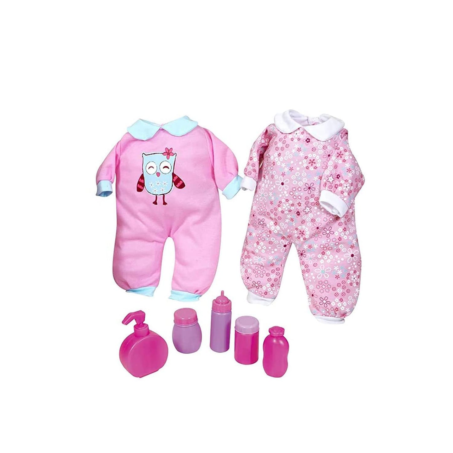 This adorable 15' Baby Doll comes dressed in colorful shirt and pants with a headband. She makes 6 different baby sounds (Mama, Papa, Hello, Bye-bye, Laughs and Cries). There are 3 additional outfits for dress up play. Comes with 4 plastic accessories.