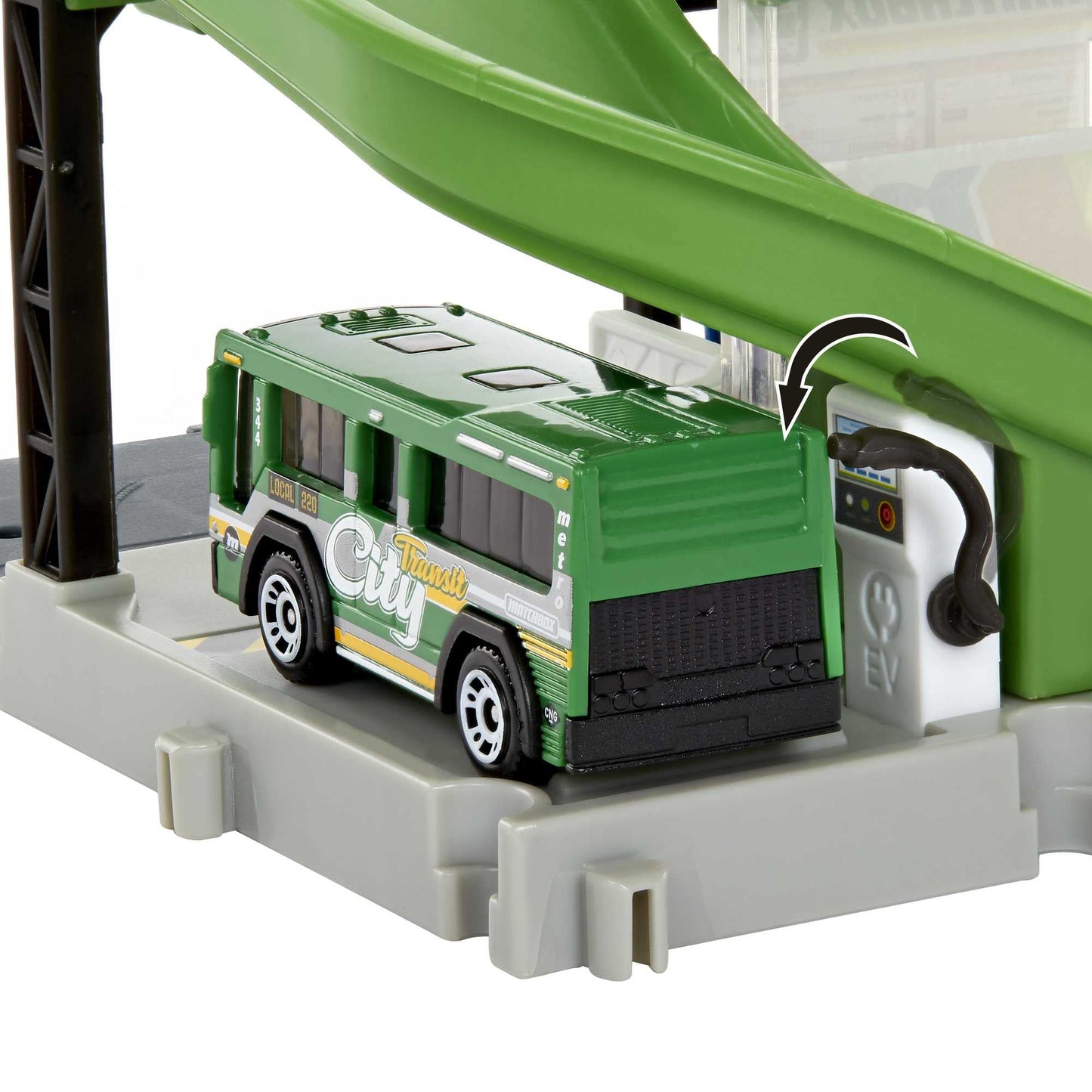 - Q: What features does the Matchbox Bus Station include? A: The Matchbox Bus Station features an automatic passenger movement when the bus enters the station, a door that opens to simulate bus charging at an electric vehicle station, and includes a detailed 1:64 scale Matchbox bus for added fun.