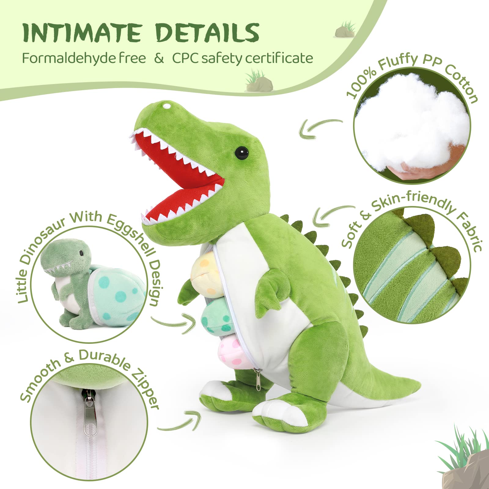 Morismos Giant Dinosaur Stuffed Animal,23.6'' Big Mommy Stuffed Dinosaurwith 3 Baby Dinosaurplush Toys & 3Eggs Plush Inside Its Zipper Tummy,Large Boy Girl Dinosaur Toysfor Kids Birthdaychristmas