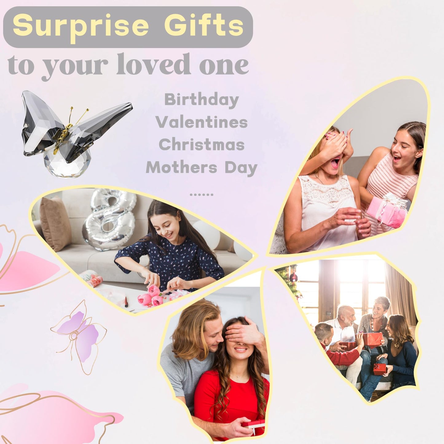 Movdyka Crystal Butterfly Decor Figurines Gifts For Women, Grey Glass Butterfly Craft Desk Office Dcorations Table Centerpieces,