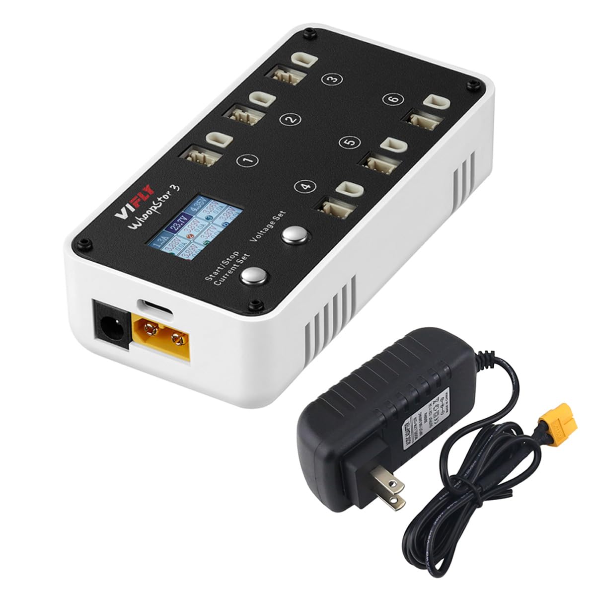- Q: What is the maximum number of batteries that the VIFLY WhoopStor 3 can charge at once? A: The VIFLY WhoopStor 3 can charge up to six 1S batteries simultaneously, thanks to its six independent charging interfaces.