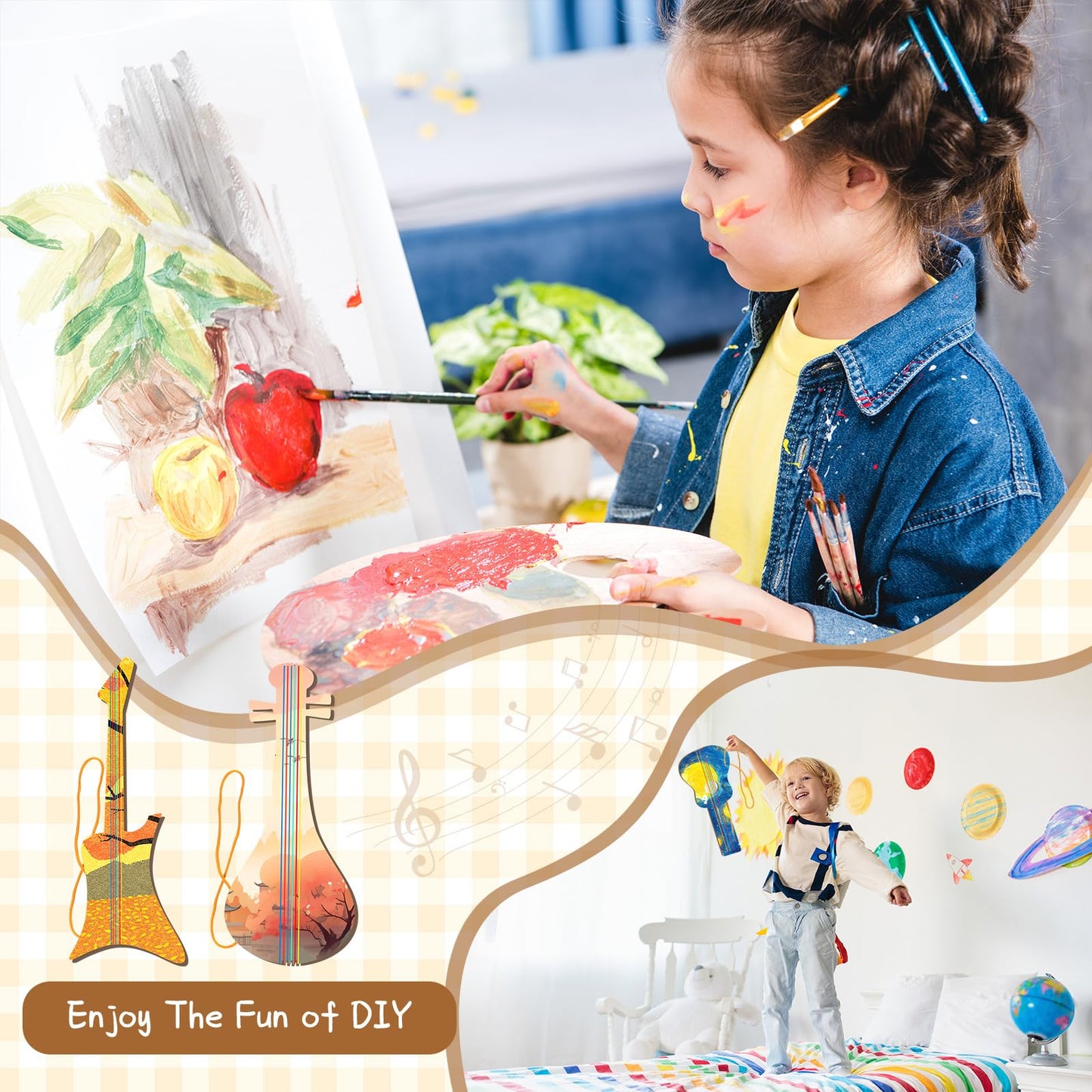Syhood 24 Pcs Diy Wood Guitar Cutouts For Kids, 12.4 X 6.5 Inches Wood Guitars Cutouts For Boys Girls, Bamboo Musical Instrument For Painting, Suitable For Crafts Class, Birthday Party, Theme Party