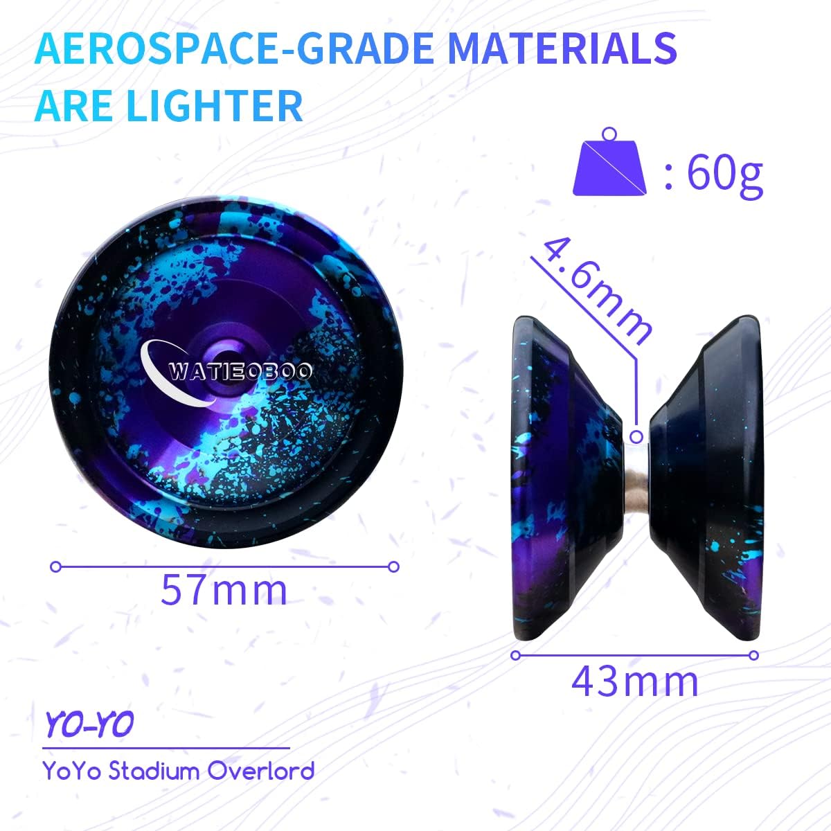 Shock And Drop Resistance Yoyo: The Professional Unresponsive Metal Yoyo Adopts High-Precision Aerospace-Grade Materials, An Aluminum Alloy Ball Shell, And Stainless Steel Bearing, Which Enhances The Impact And Drop Resistance Of The Aluminum Yo-Yo. This Butterfly Yo-Yo Spins Smoothly And Has A Strong Idling Ability For Games And Daily Practice. | From Beginner To Advanced Yoyo: Watieoboo Professional Yoyo Can Change Bearings As Needed. The U-Shaped Approach Has No Response, And The Yo-Yo Cannot Return Automatically After Being Thrown. You Need To Use A Trick Called ''Binding'' To Get It Back. Style String Technology (1A, 3A, 5A) Provides Powerful Spin, Excellent Stability, And A Great String Feel. Suitable For Intermediate To Advanced Players And Professional Players. | Lighter Weight And Stronger Balance: Responsive Yoyo Is Not A Simple Toy, Weight: 65.6G, Diameter: 57Mm, Width: 43Mm, Gap Width: 4.6Mm, Yo-Yo Enhances Children'S Body Coordination, Finger Flexibility, And Brain Response Ability, Cultivate Children'S Perseverance And Patience, Keep Children Away From Computer Games And Mobile Phones. | Gifts For Kids: Metal Aluminum Alloy Offers Elegant And Casual Gift Packs That Are The Perfect Christmas And Thanksgiving Gift For Kids, Family, And Friends. Here We Have 1 X Yoyo, 10 X Replacement Professional Yoyo Strings (Fluorescent Yellow), 1 X Professional Three Finger Gloves, And 1 X Yoyo Waist Bag (To Store All Your Yoyo Accessories For Easy Portability). | Endless Fun And Multiple Benefits: Metal Aluminum Alloy For Adults Can Play Yoyo Indoors And Outdoors. It'S A Great Toy For All Kinds Of Parties And Events. In Addition, It Is Also Good For Developing Children'S Intelligence And Improving Their Creative Ability. For Adults, It'S The Perfect Way To Reduce Stress. It Can Easily Shorten The Distance Between People.