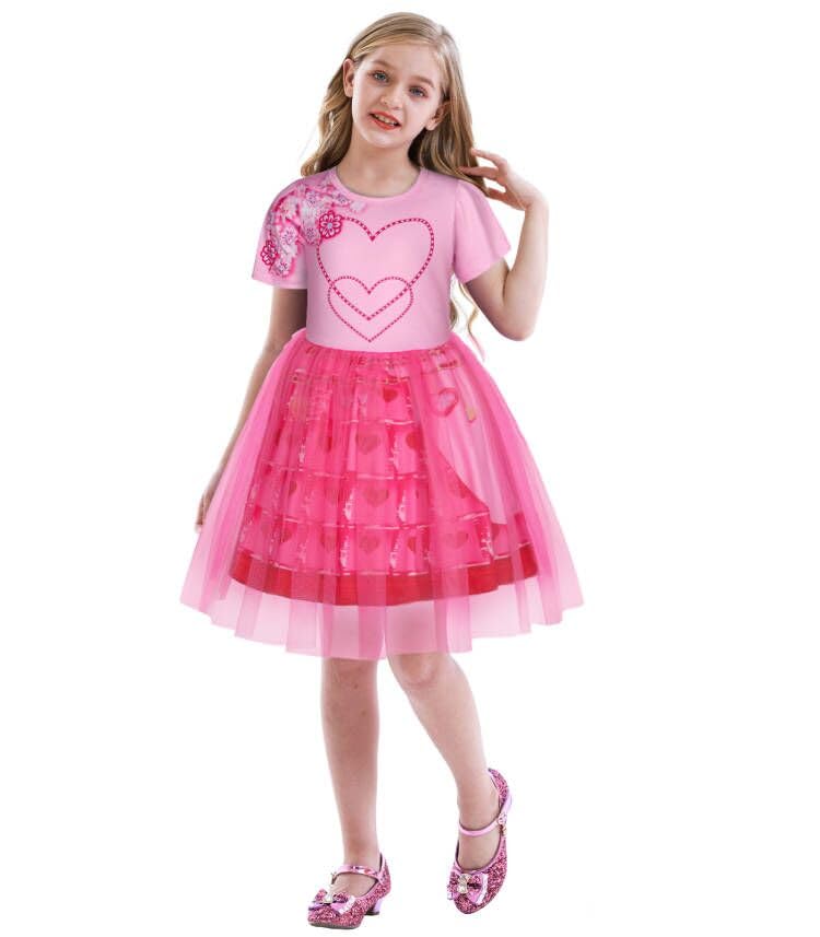 ?Unique Design?princess costumes is inspired by the popular musical seires,featuring a vivid print that is both fashionable and stylish.transform your little one into a magical princess red with our cute costumes. | ?Comfortable Material?Princess red costume made from lightweight fabrics polyester for comfort and ease of movement,Stand out at any costume party with this stunning halloween costume. | ?Innovative Design?Round neck design, flutter sleeve,novel cartoon print.Knee length puffy tulle skirt for easy movement.The colour of pink combined with the cute print makes your child look like a princess in this dress! | ?Great Halloween Costume?Get ready for a spook-tacular night with this iconic pink costume,Also applies to everyday clothes,back to school, birthday presents,game costumes,party dresses and pretend games etc! | ?Size?Halloween pink princess costume is suitable for girls aged 3-10 years.For your child's comfort, please check the size before purchasing.