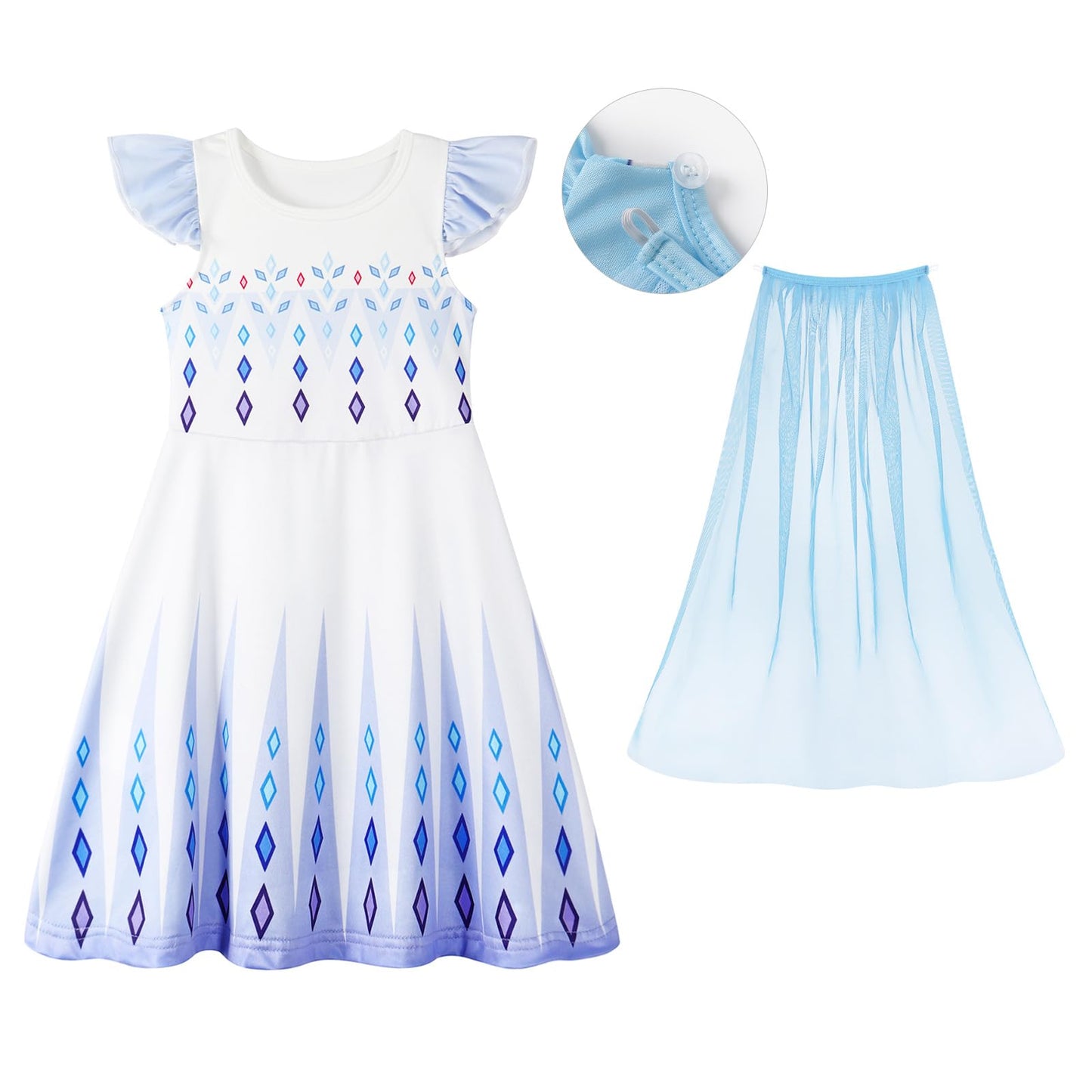 ?Perfect Princess Dress Up Clothes?Dressing Up Has Never Been So Enchanting With Different Princess Outfits To Choose From,Your Child Can Dress Up As Her Favorite Character. | ?High Quality Fabric?Our Princess Dress For Girls Is Made Of Polyester And Cotton Lining, The Fabric Is Very Soft,Smooth,Skin-Friendly Breathable & Comfortable And Will Not Make Your Girls Feel Itchy Or Irritating. | ?Lovely Design?Princess Puffy Sleeve Dress For Girls, Vivid 3D Print,Its Gorgeous And Vibrant.Looks Very Lovely And Cute.A Removable Cape Adds A Touch Of Magic To The Princess Outfit. | ?Occasion?Perfect For Daily Wear, Halloween Cosplay,Theme Party,Christmas,Carnival,Party Event,School Play,Video Shooting,Cosplay Costume,Performance,Role Playing Game,Etc. | ?Available Sizes?Add More Fresh,Stylish And Fashion Fever To Her Princess Wardrobe.Gift For Girls Age 3,4,5,6,7,8,9,10 Year Old For Birthday,Halloween, Christmas Party.Make Every Occasion Special For Your Little Princess Who Are Obsessed With Princess Role Play.