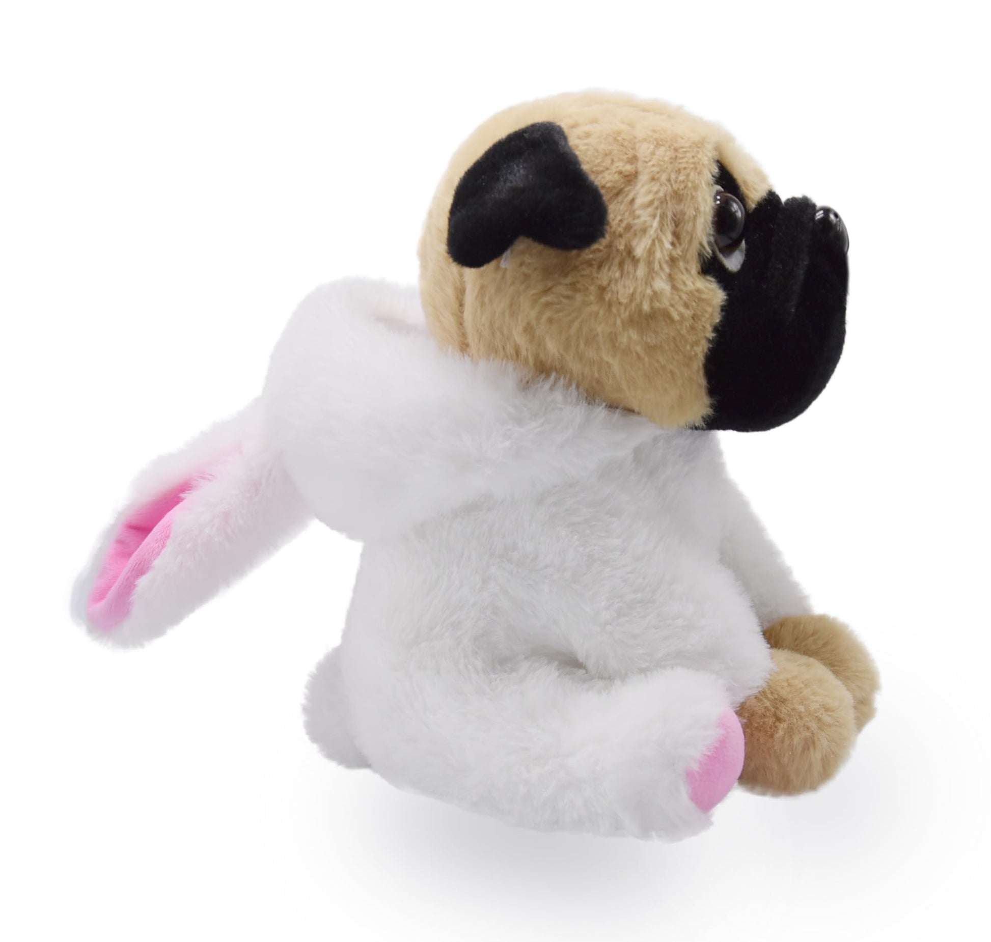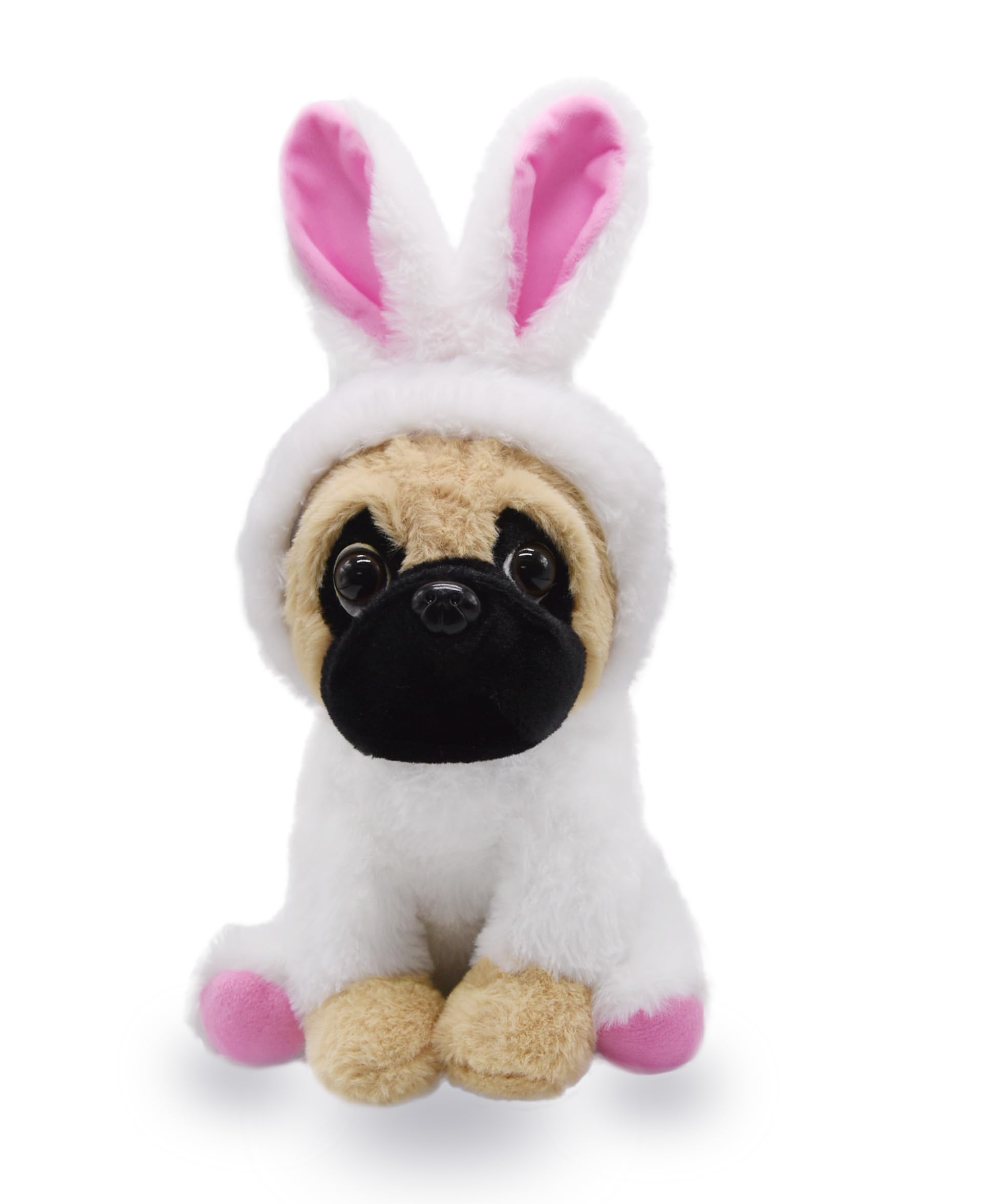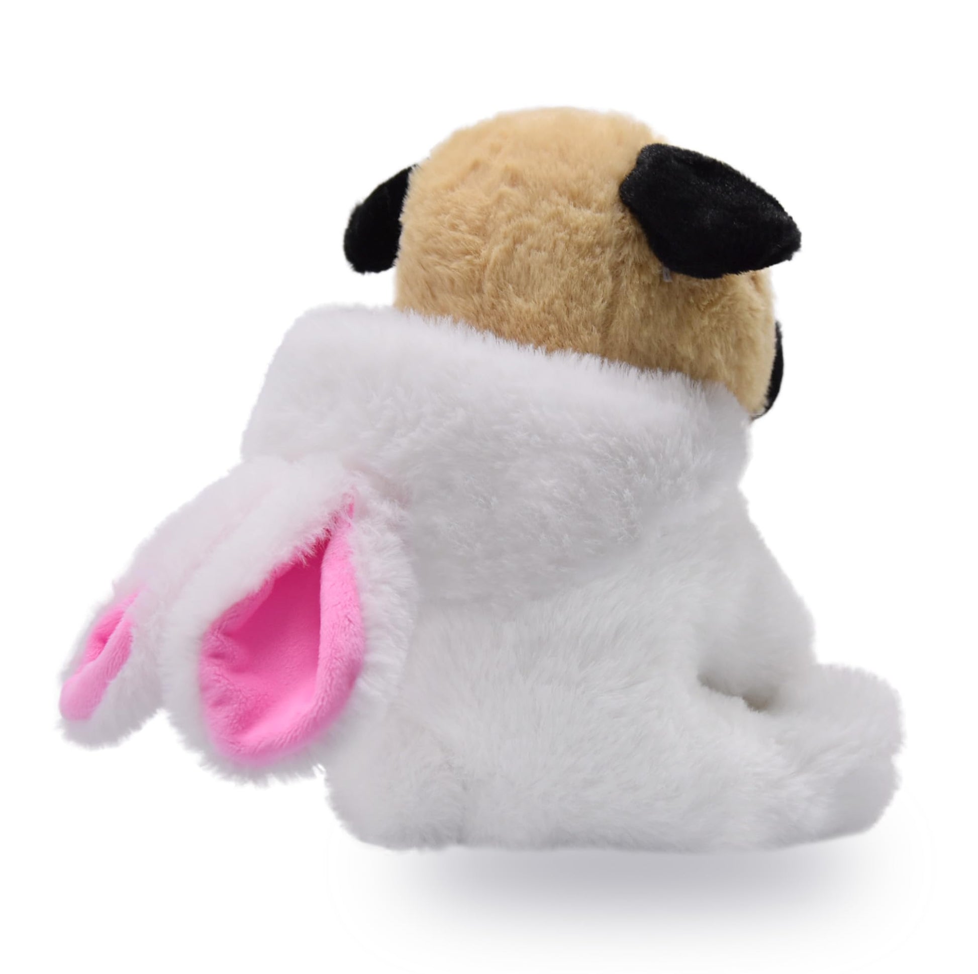 Prepare to be delighted by this irresistibly adorable pug stuffed animal dressed in a white bunny costume! Who will ignore such a cute gift? It promises lasting enjoyment for a long time.Package Contains 1 x Plush Dog