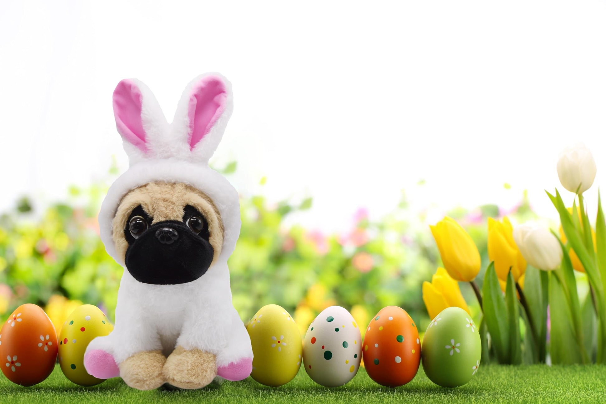 Yonlit Adorable Pug-Bunny Stuffed Animal Dressed In A White Rabbit Outfit, Super Cute And Soft Plush Puppy Bunny For Easter Bask