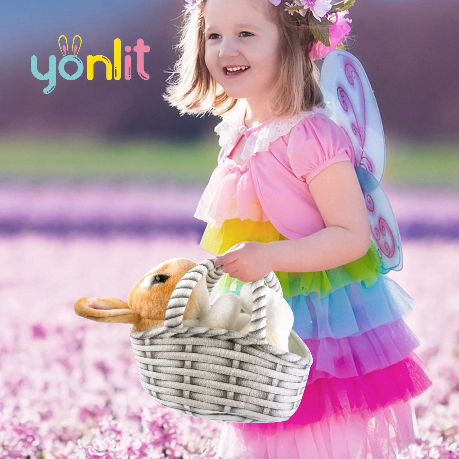 - Q: What is included in the YONLIT Plush Pet Bunny Basket Set? A: The YONLIT Plush Pet Bunny Basket Set includes a lifelike stuffed pet bunny and a suitable fabric basket with grey stripes, making it a complete playset for children.