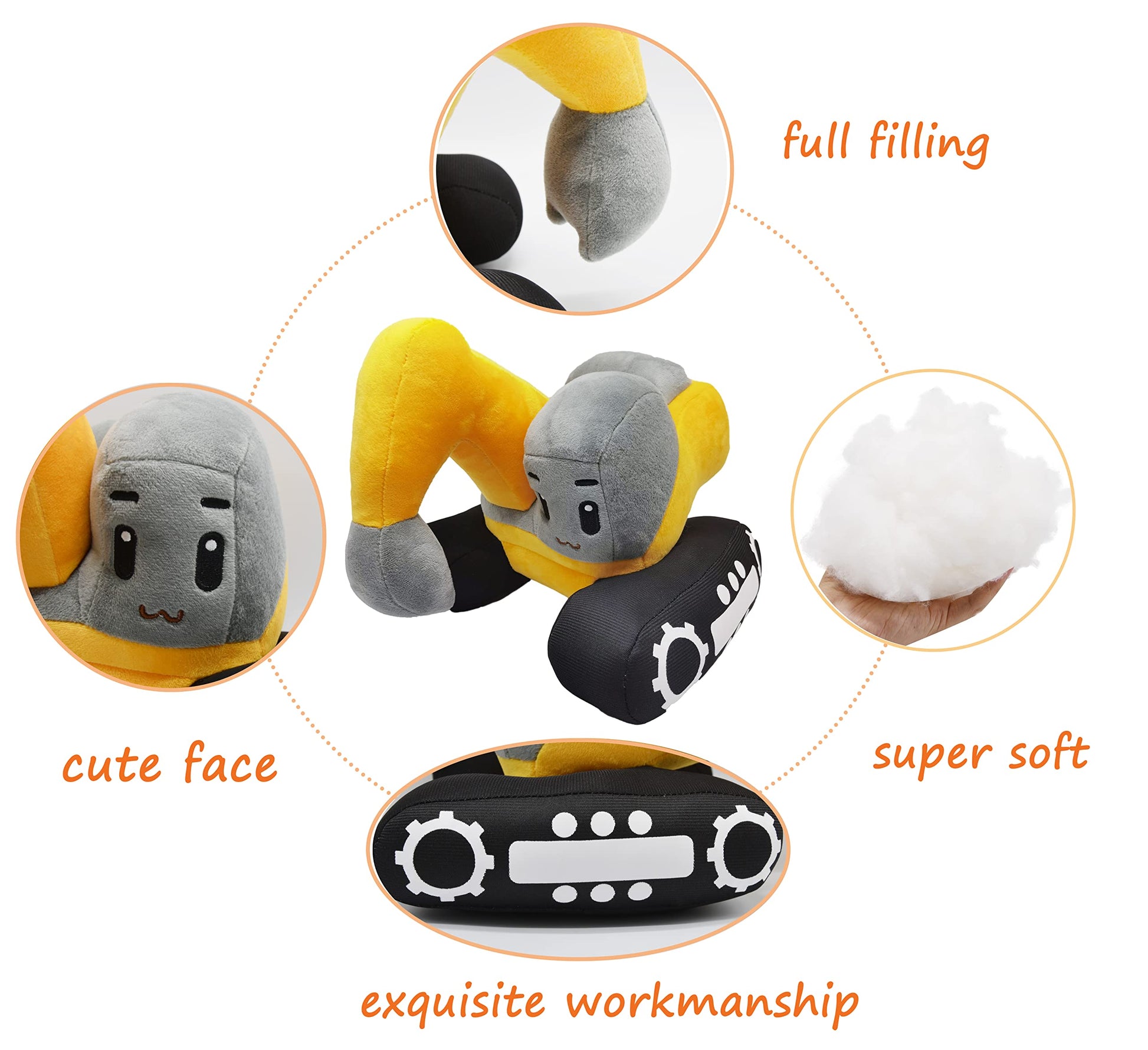 - Q: How do I clean the YONLIT Soft Excavator toy? A: This plush excavator is machine washable and can be dried in a machine without worrying about fading, making it easy to maintain.