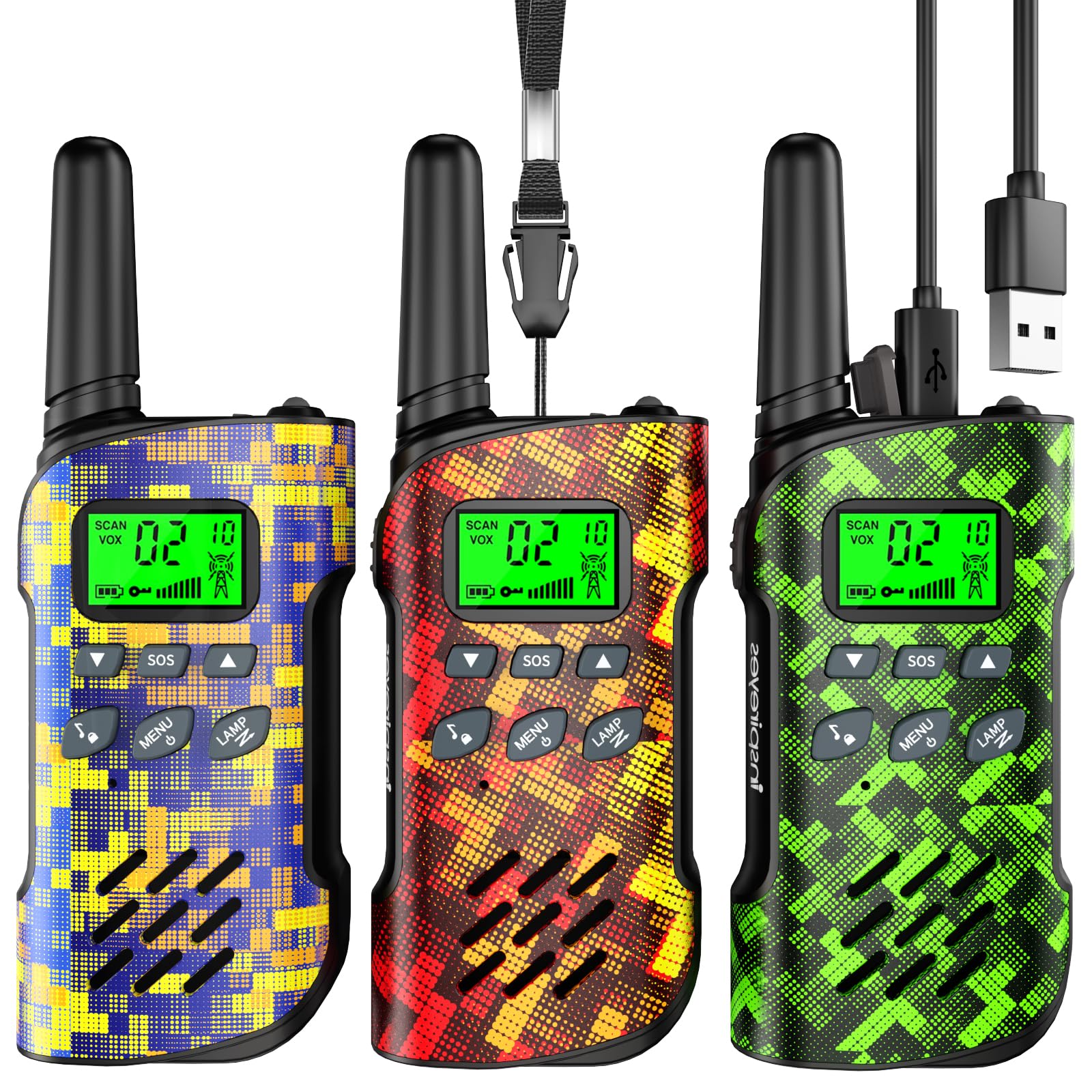 Inspireyes Walkie Talkies For Kids Rechargeable, 48 Hours Working Time 2 Way Radio Long Range, Outdoor Camping Games Toy Birthday Xmas Gift For Boys Age 8-12 3-5 Girls, 3 Pack