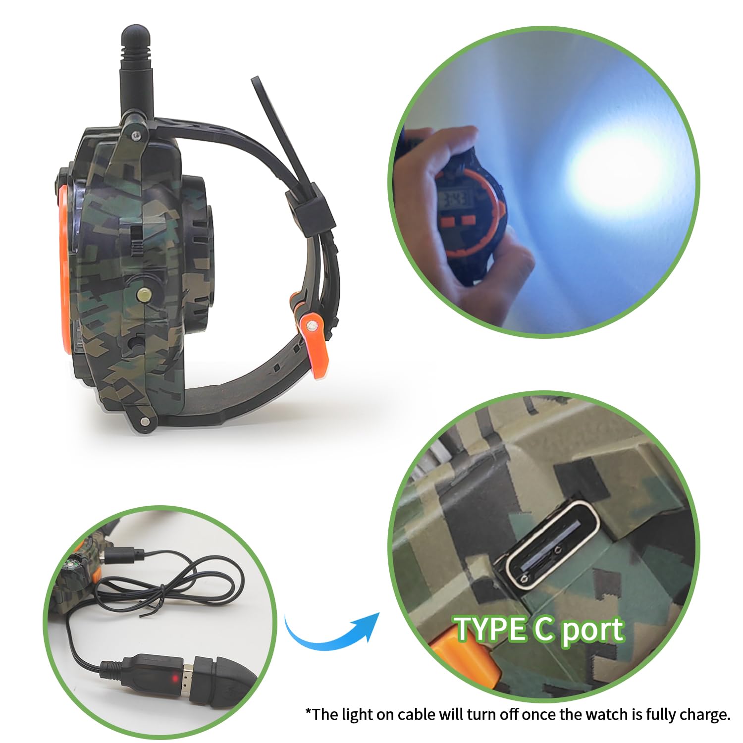 Package Includes: 2 X Kids Walkie Talkies, 2 X Usb Charge Cable, 1 X User Manual. Unleash Your Inner Adventurer With These Rugged And Rechargeable Walkie Talkies For Kids! Designed With A Camouflage Exterior, They'Ll Blend Seamlessly Into Outdoor Adventures. With A Range Of Up To 1000 Feet, These Walkie Talkies Allow For Clear Communication During Playtime Or Family Outings. The Built-In Lcd Display And Flashlight Ensure Visibility In Low-Light Conditions, While The Compact Size Makes Them Easy To Carry. Encourage Exploration, Teamwork, And Endless Fun With This Durable And Interactive Toy Set. Charge Them Up And Let The Adventure Begin!