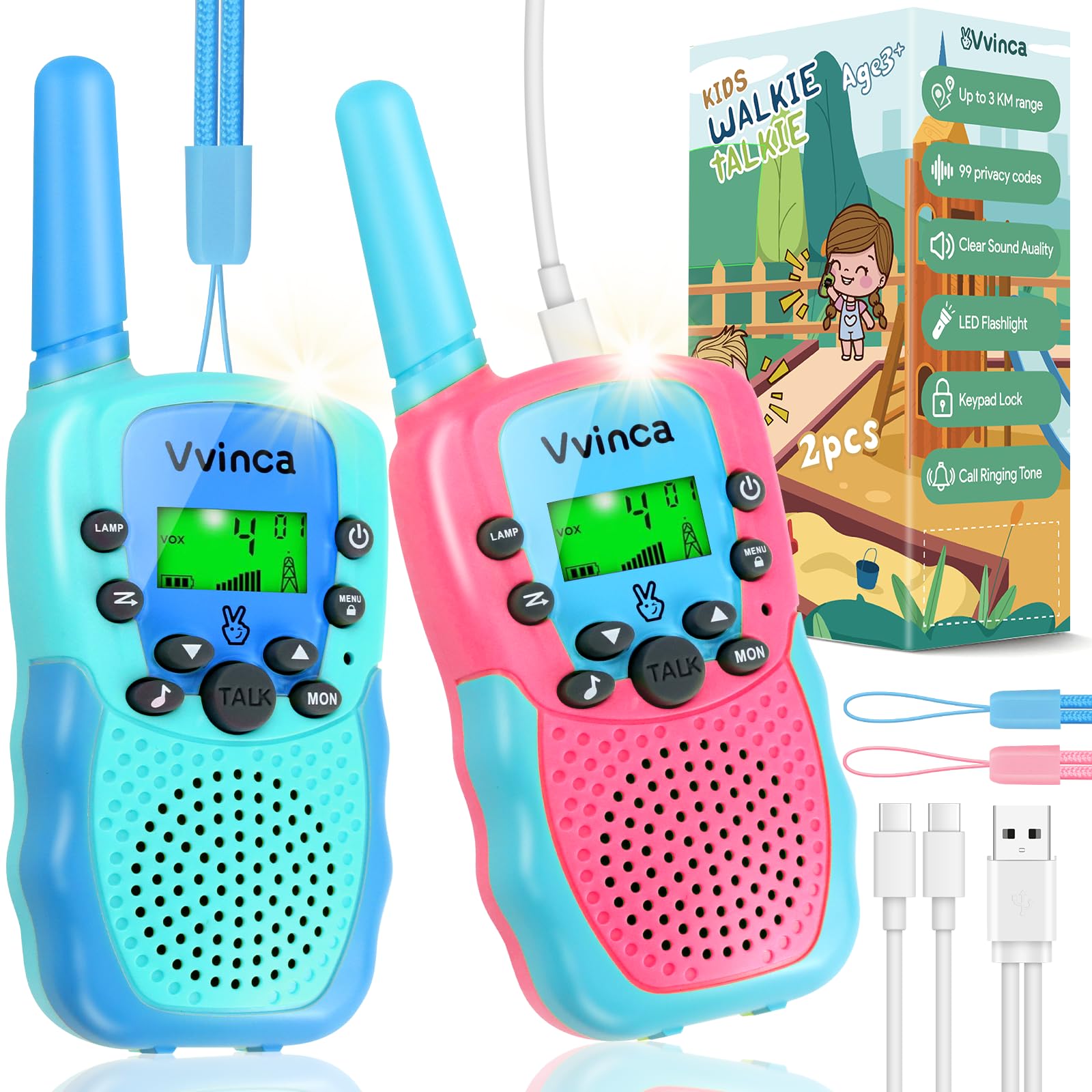 Vvinca Rechargeable Walkie Talkies For Kids, Long Range 22 Channels 2 Way Kids Walkie Talkie With Flashlight For Camping Hiking