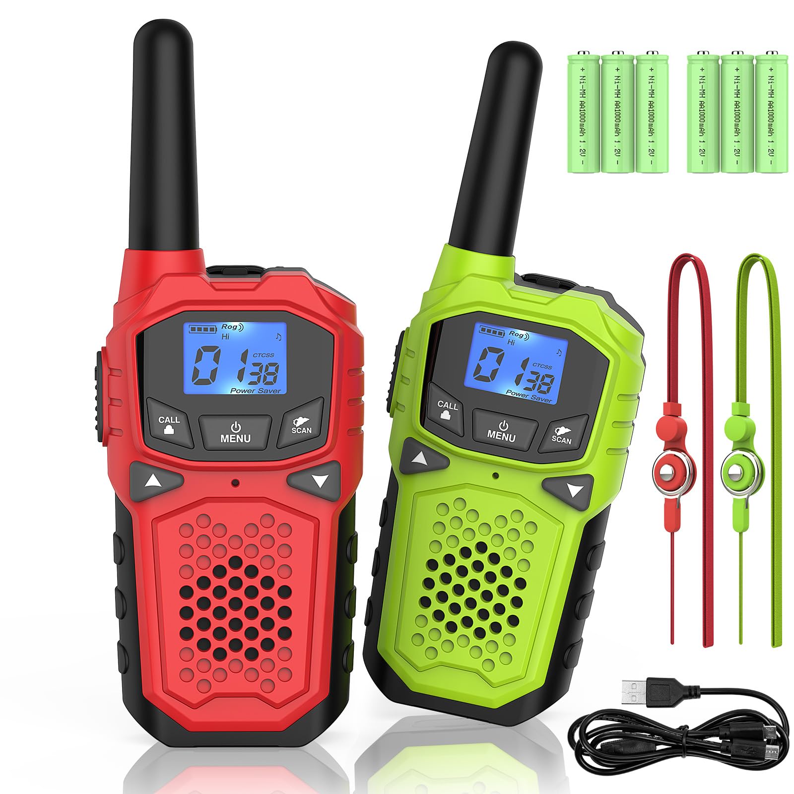 This walkie-talkie has bright colors and contains a lot of dynamic cartoon elements. To be explored, the machine feels very good. It is very suitable for outdoor adventure or camping. It can greatly improve the communication between family members. The machine is medium in size, feels very good, and operates. Simple and easy to carry. These uniquely designed walkie-talkies have 22 channels preset with 22 channels, 121 privacy codes (38 CTCSS codes / 83 DCS codes) to provide a wide range of frequency usage (up to 2178 combinations to help prevent other conversations) , Compatible with any radio, thus supporting one-to-many transmission. You can share this walkie-talkie with your children, parents, neighbors and friends for indoor activities, such as family, shopping mall, neighborhood and outdoor activities, suitable for adults, kids to use in outdoor activities, keep in contact during football, hiking, camping, road trips or skiing.. providing you with everything you need to communicate with family and friends in real time. Safe and secure and convenience. ?Your package will include? ??1 x User's Manual ??1 x USB charger ?? 2 x Family Walkie Talkies ??2 x Adjustable lanyard ??3 x 2 1000 mAh Rechargeable AA batteries ??1x Exquisite Gift Box