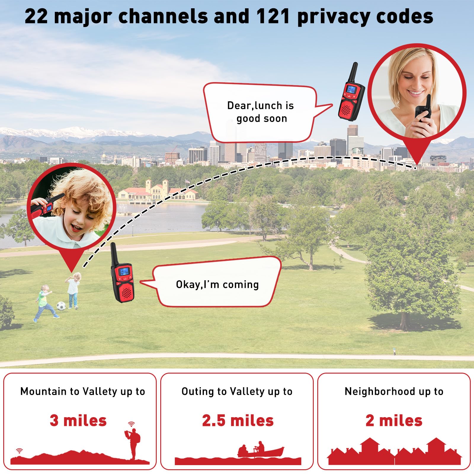 WokTok mature-themed Walkie Talkies Long Range Rechargeable Portable Two-Way Walkie Talkie Camping Gear SOS Sirens NOAA Weather Alarms Kid's Toys Easy-to-Use Rechargeable Walkie Talkies 4 Packs