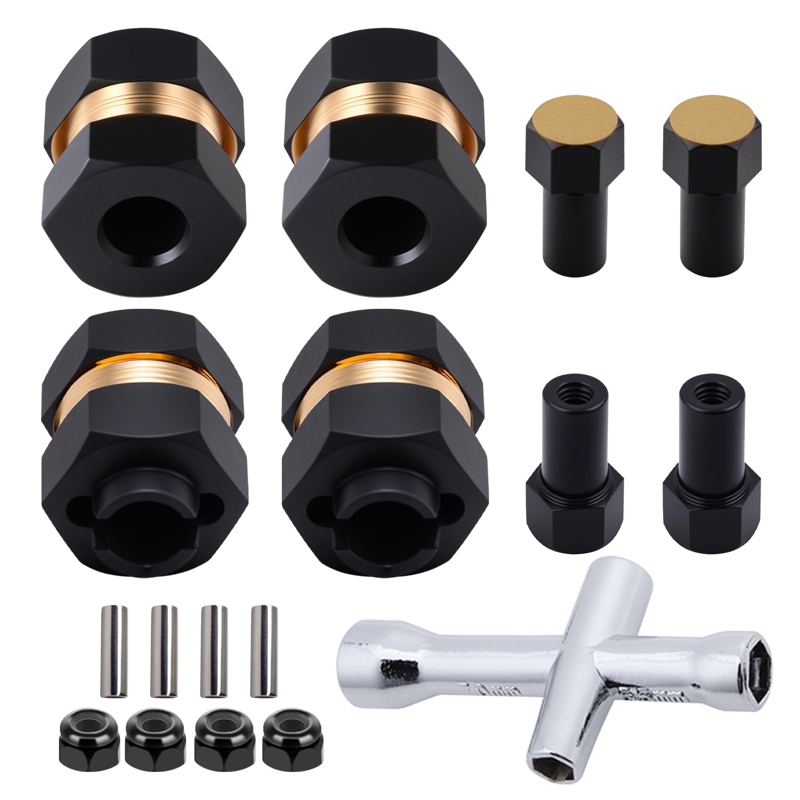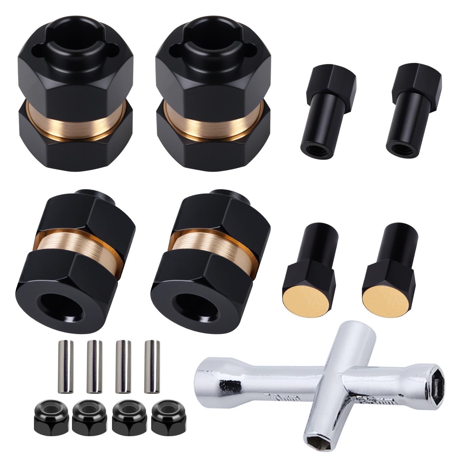4 Pieces Brass Extended Wheel Hubs 7 mm Hex Spacers for Axial SCX24 1/24 RC Crawler Upgrades Parts & Locknuts Wrench Tool SCX24
