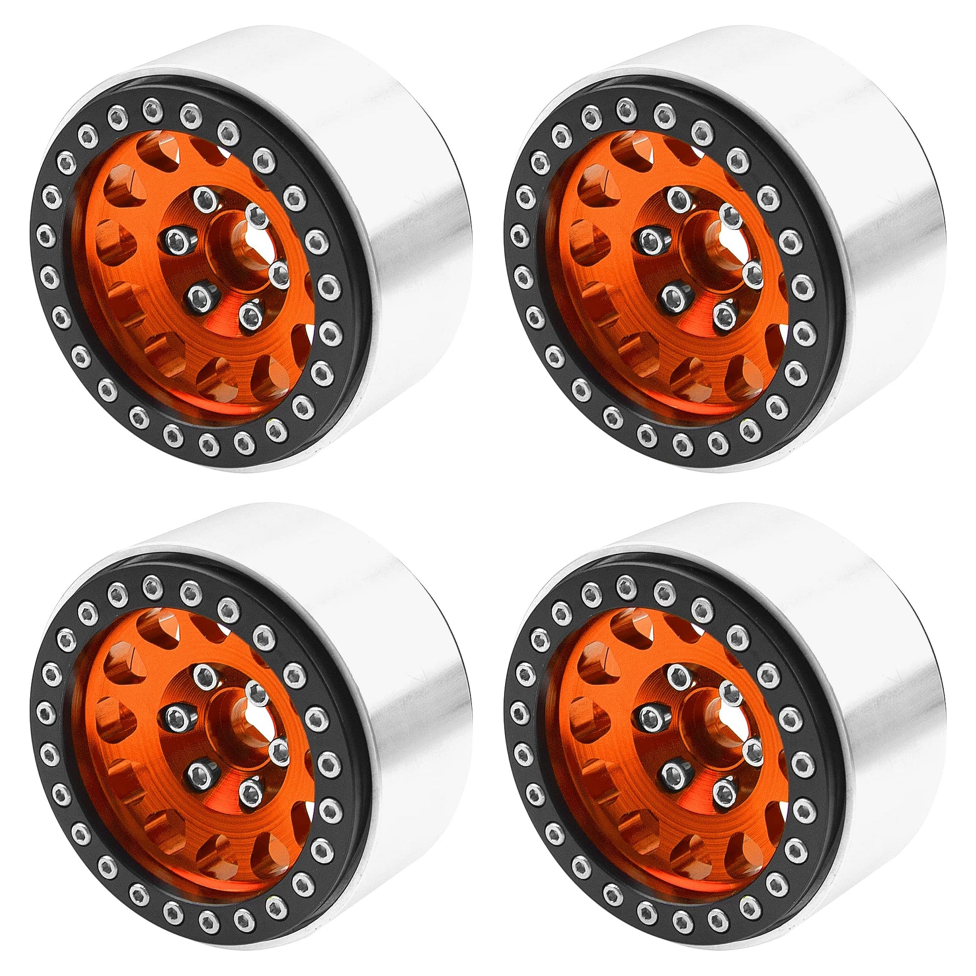 Fit for: 12mm Hex Hub and most 1.9 inch size tires (Please check the size before place the order) The 1.9'' RC beadlock are compatible with Axial SCX10 D90 Traxxas TRX4 RedCat Gen8 Tamiya CC01 1/10 RC crawler car The 1.9 beadlock wheels 35mm wide are made of high quality aluminum alloy,it is more durable. 1.9 Inch beadlock wheel rim, no gluing, convenient to change the tires Lightweight upgrade instantly enhances overall performance in handling and durability. Standard 12mm hex mount.5 Colors to chosen from. Item Name:RC 1.9'' Beadlock Wheels Material: Aluminum Alloy Wheel Diameter: 56mm, Wheel Rim Width: 30mm, Hexagon Adapter: 12mm Inner Diameter: 45mm Diameter of the hole: 7mm Weight: Approx. 335g/4Pcs Color:Silver/Black/Red/Orange/Titanium(Optional) Package List: 4 x 1.9 Inch RC Car Metal Wheel Rim