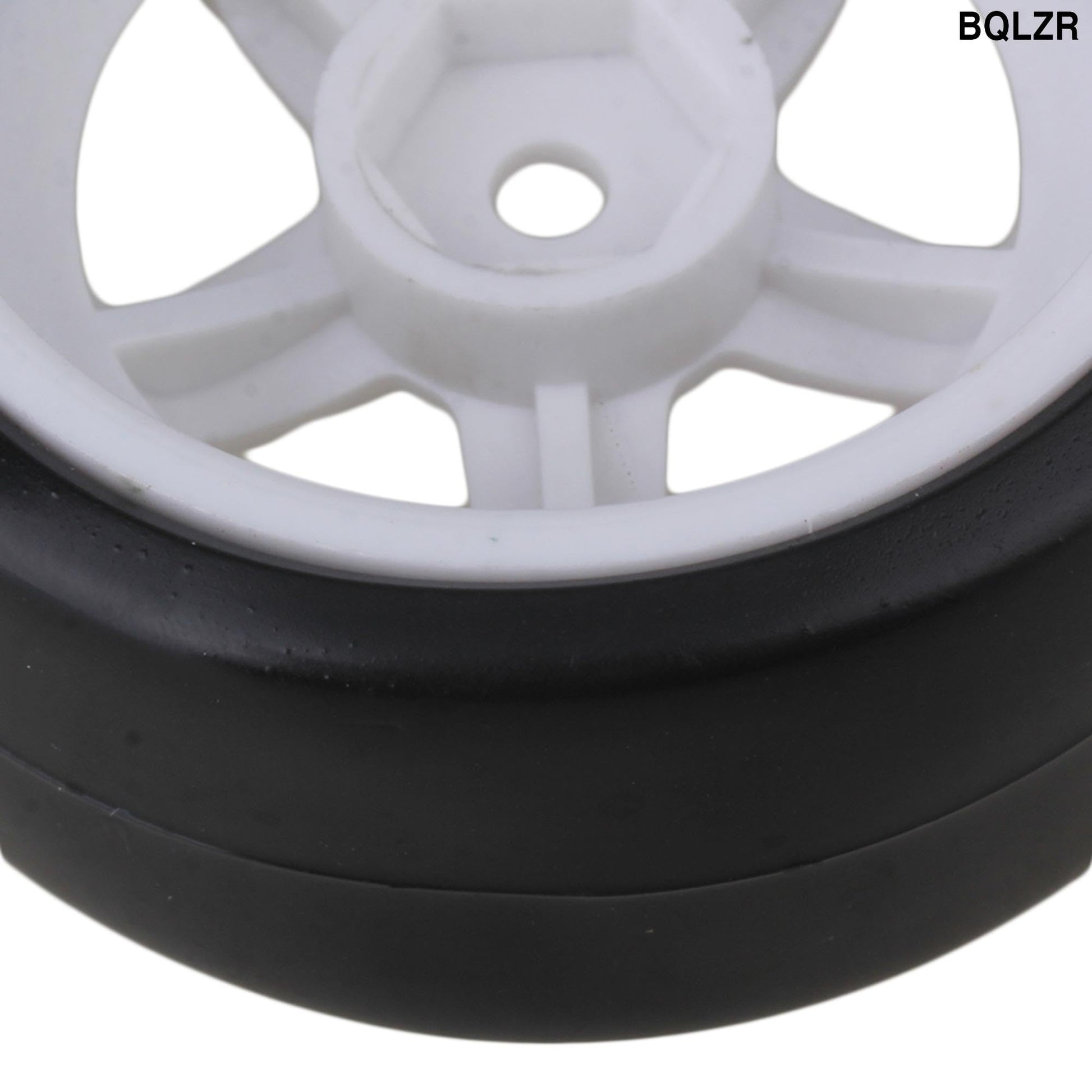 BQLZR 5 Spoke White Wheel Rim & Tyre Tires White+Black for RC 1:10 Drift Car & On Road Car Pack Of 4