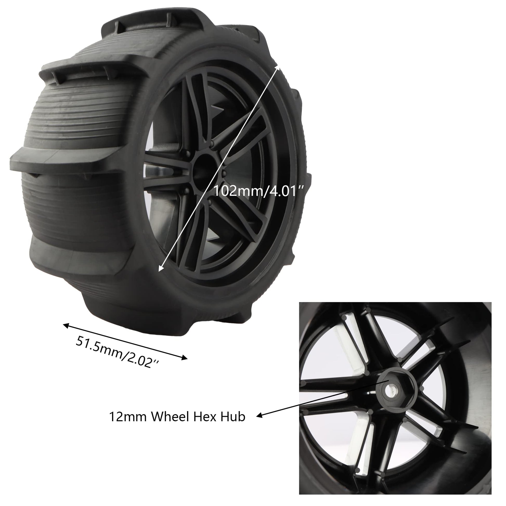 GDOOL 1:10 1:12 Paddles Buggy Tires Hex 12mm Wheels for Snow Sand 1:10 1:12 9125 9155 9156 124009 X-07 F-10 YC400 2995RC Car(4 P