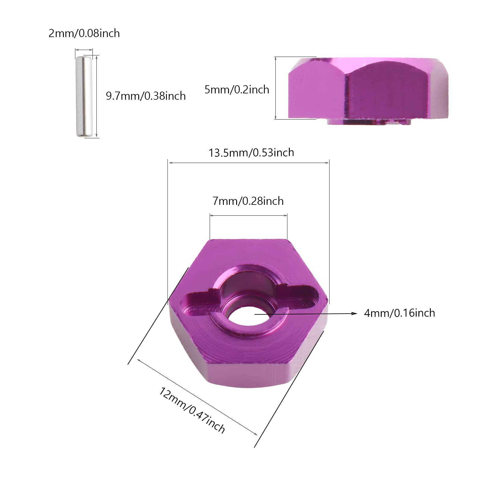 ?Feature? 100% brand new. Compatible with RC Hobby Model Cars. CNC precision machining. Easy upgrade from the original part. Made of high-quality aluminum alloy material, the surface is anodized, corrosion-resistant, prolonged service life and more durable. The nylon inserts of wheel lock nuts ensure your wheels stay connected to the vehicle under the harshest conditions. ?Specification? Item:Aluminum RC Wheel Hex Hub Drive Adapter Material: Aluminum alloy Hex Diameter: 12mm / 0.47'' Thickness: 5mm / 0.20'' Axle Hole Diameter: 4mm / 0.16'' Pins: 2x10mm / 0.08x0.39'' Item:Aluminum M4 Flanged Wheel Locknuts Thickness:5.5mm / 0.22'' Hole Diameter: 4mm / 0.16'' Outside Base Diameter: 9mm / 0.35'' Material: aluminum alloy; Nylon ?Package Include? 4PCS Wheel Hex Hubs 4PCS Pins 4PCS M4 Lock Nuts