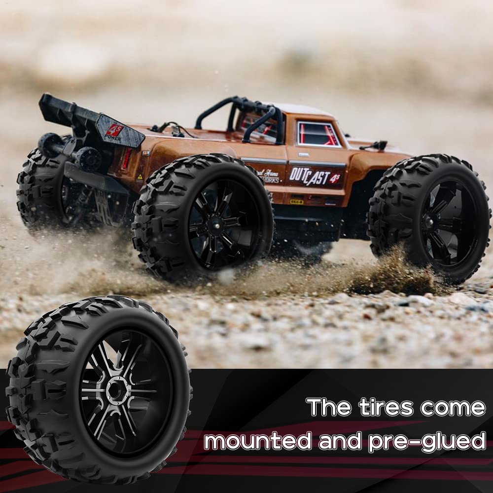 - Compatibility: This 1/10 scale 17mm hex RC wheels and tires are designed for nearly all 1/10 scale RC trucks with a 17mm hex, including popular models such as the 1/10 Maxx, Revo 3.3, Summit, T-Maxx 3.3, E-Revo, and 1/10 Arrma Outcast 4S/Kraton 4S RC Monster Truck. Please verify compatibility with your specific model.
