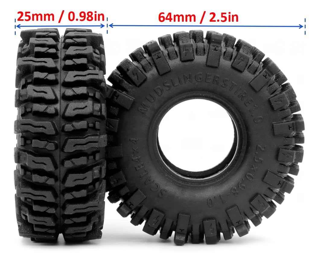 HOBBYSOUL 1.0 Mud Slingers Tires 64 * 25mm Super Soft Sticky 1.0 Crawler Tires for RC 1/24 AX24 SCX24 FCX24 1/18 TRX4M Upgrade