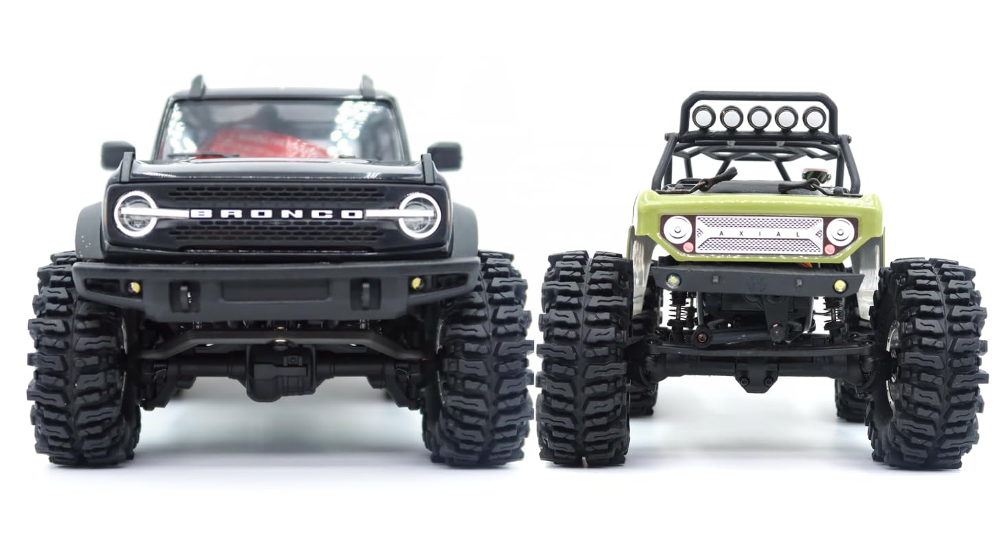 - Q: Do I need to make any modifications to my RC vehicle to use these tires? A: Yes, some RC vehicles, especially the 1/18 TRX4M, may require modifications such as trimming the front and rear bumpers or removing fender flares to accommodate the larger size of these 1.0 tires for optimal performance.